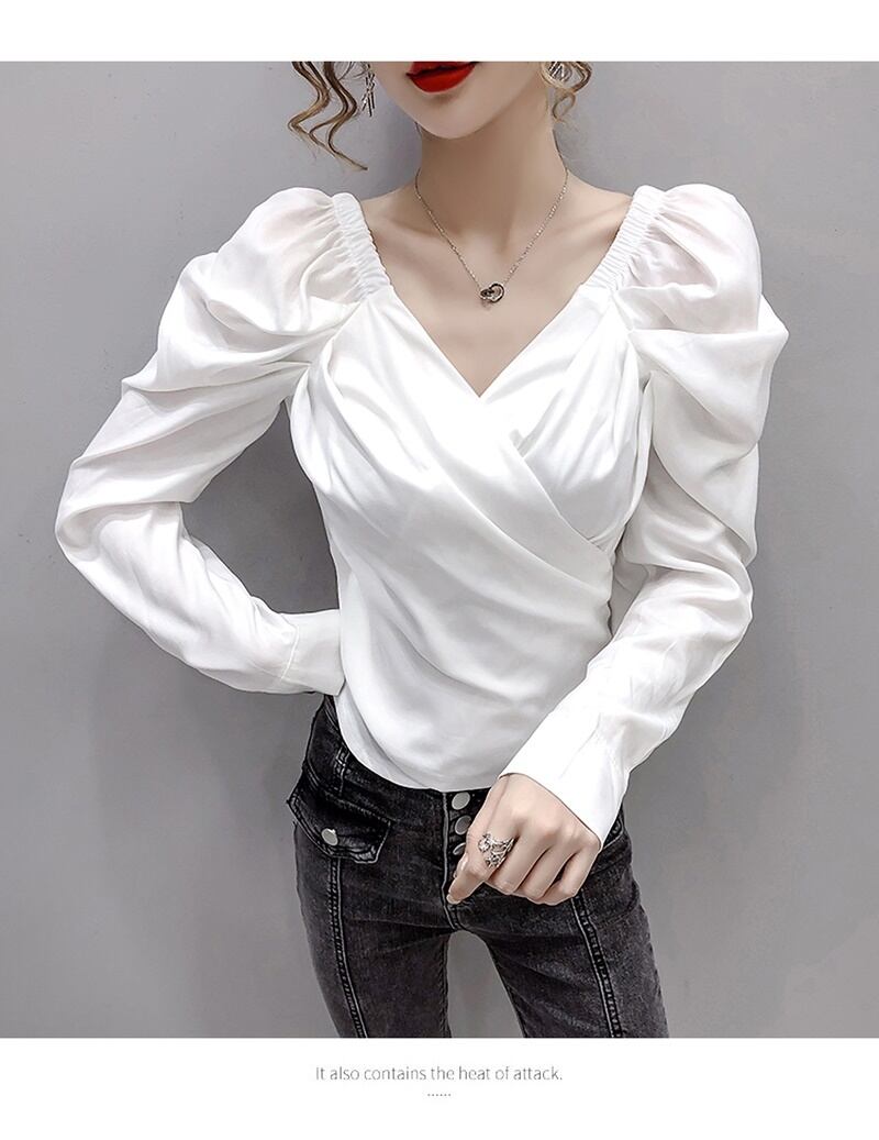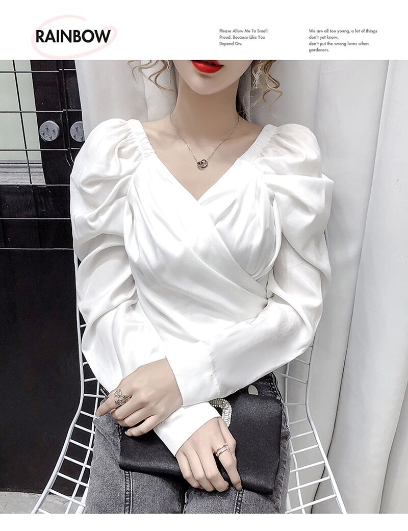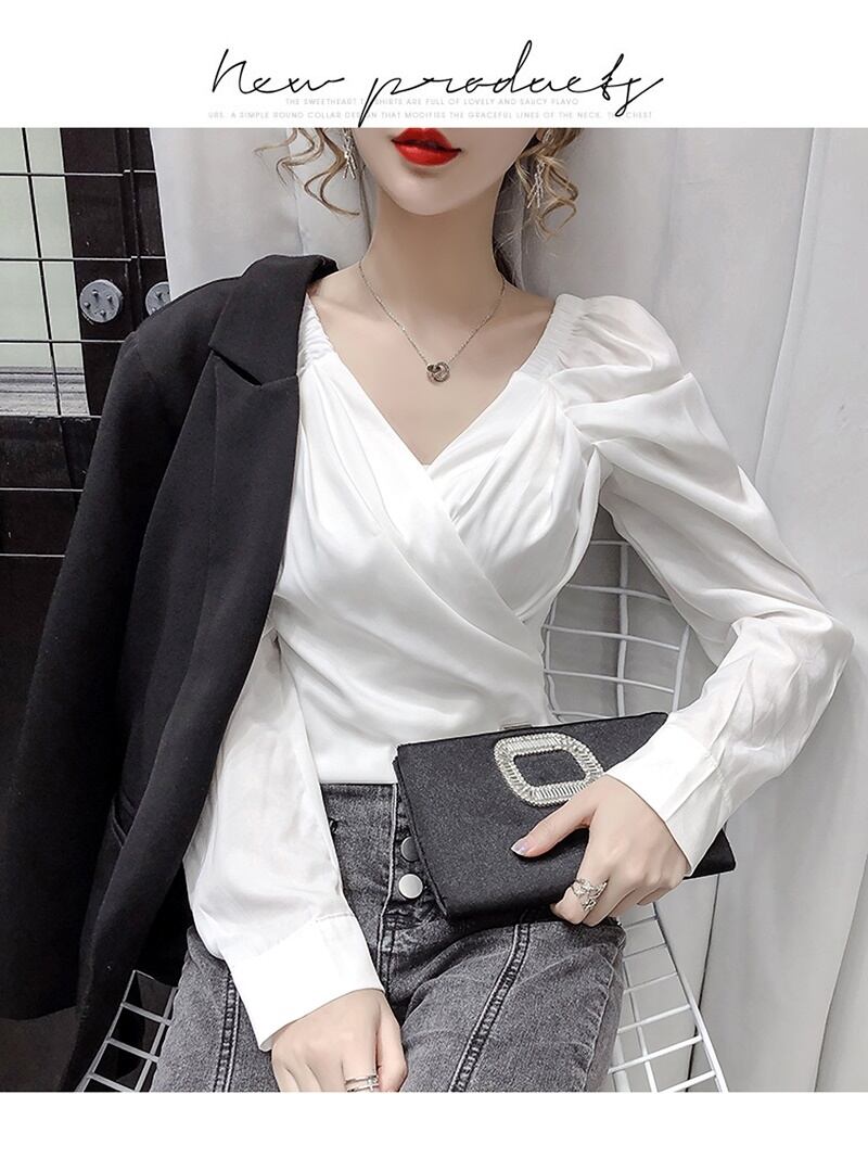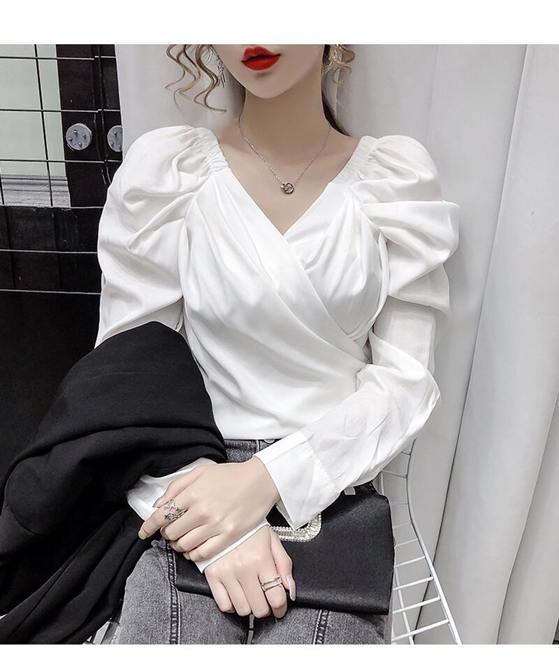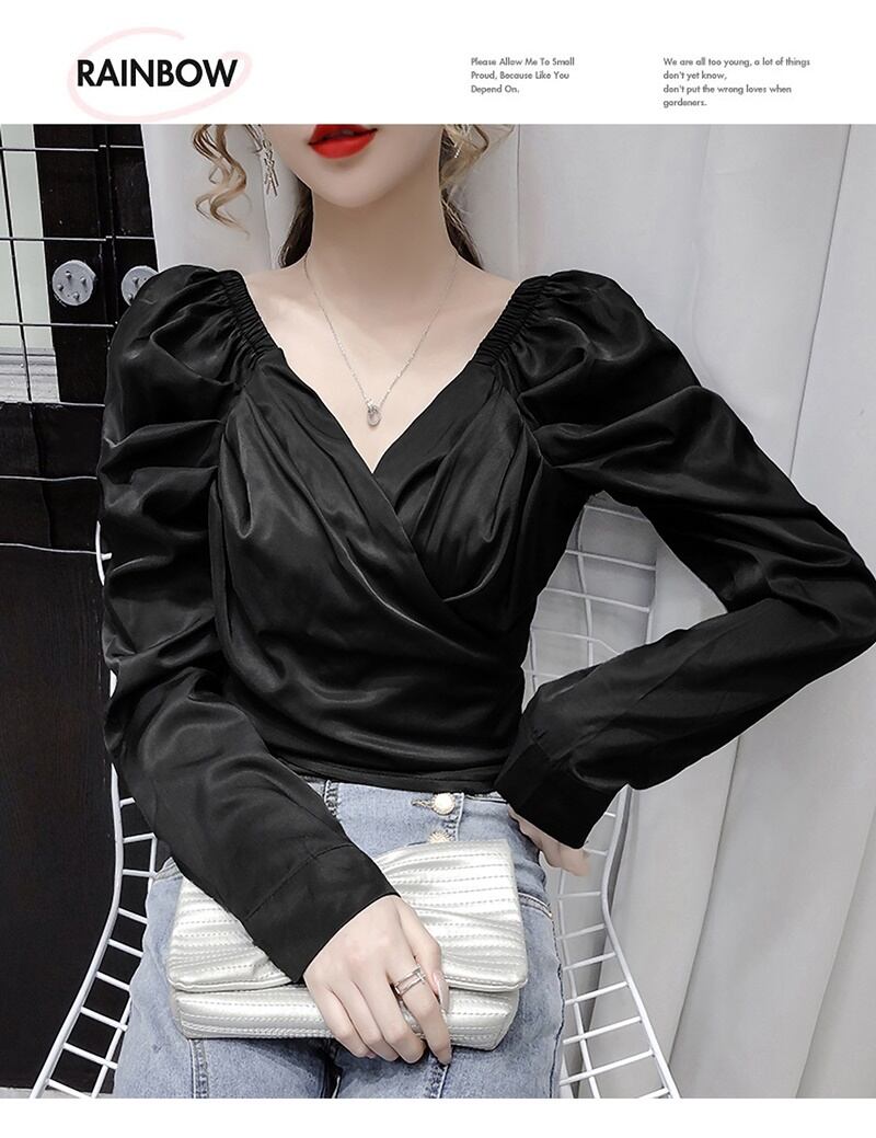 2カラー ギャザー Vネック 長袖 シャツ ブラウス *bl384
