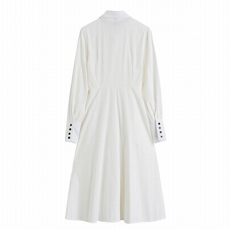 手首をほっそり見せてくれるロングカフスは手元のポイントに。