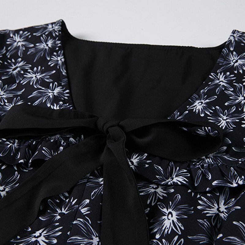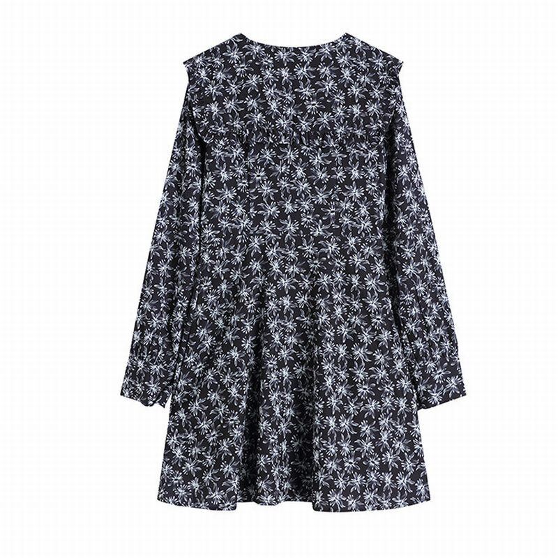 花柄 Vネック Aライン ミニ丈 長袖 ワンピース *on762