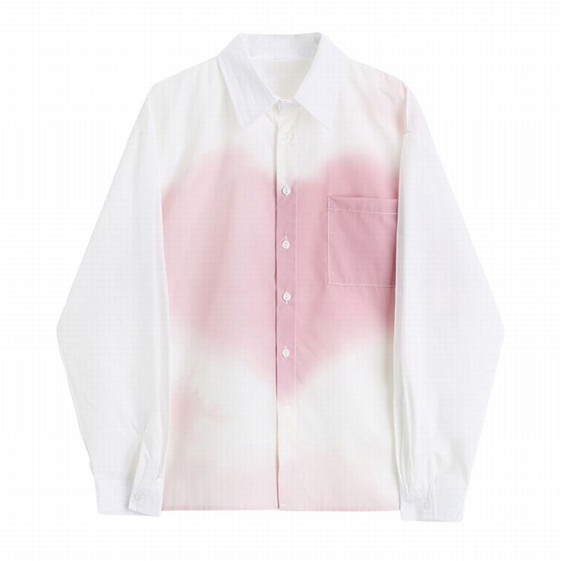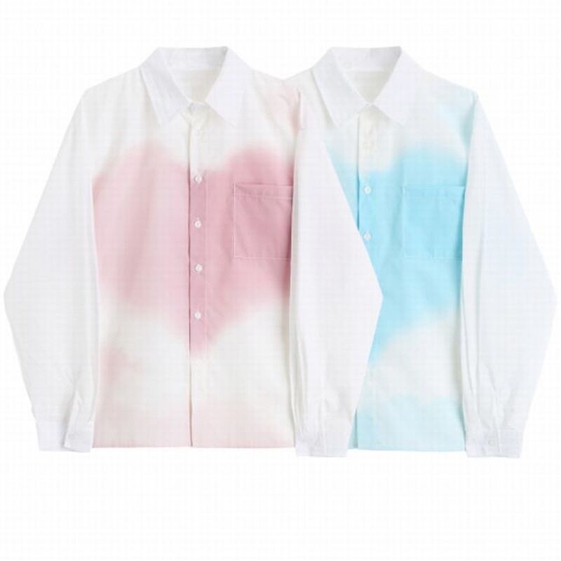 2カラー ハート柄 長袖 シャツ ブラウス *bl391