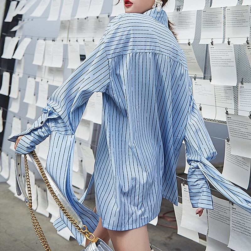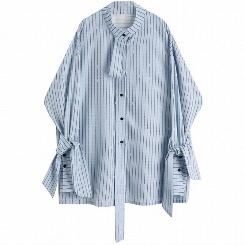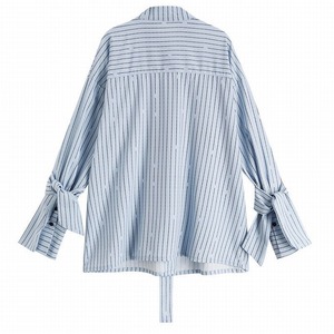 ストライプ リボン 長袖 シャツ ブラウス *bl393