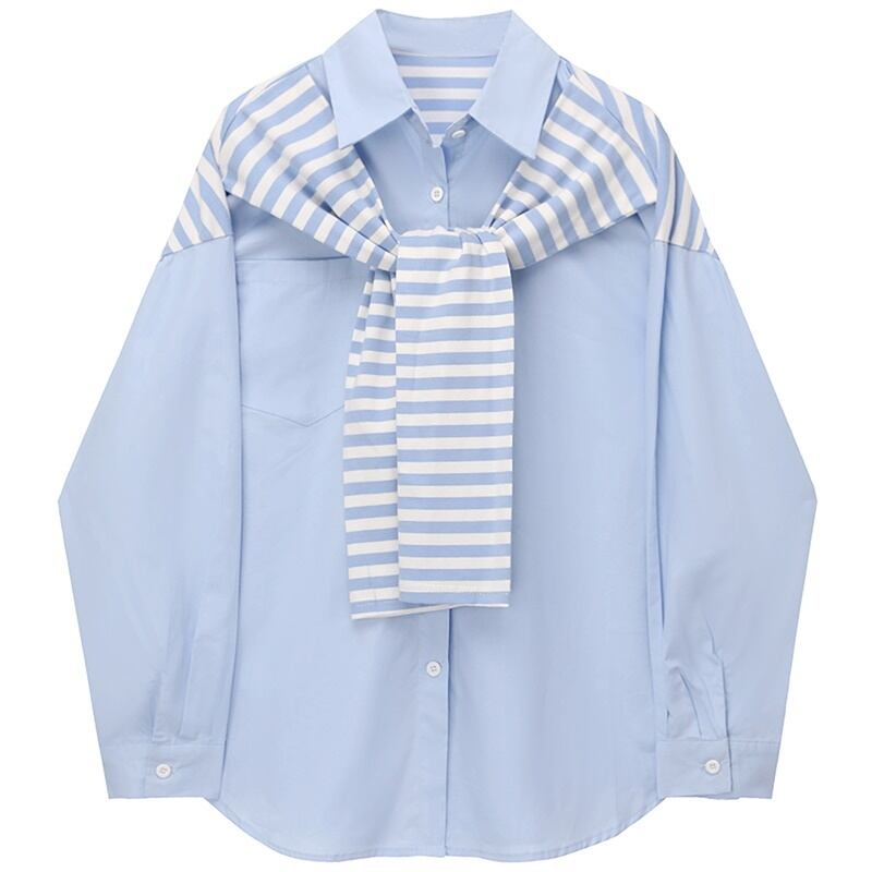 2カラー ストライプ 長袖 シャツ ブラウス *bl394