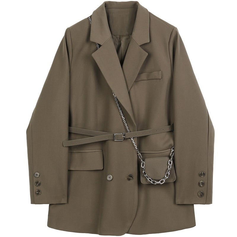 ツーピース ジャケット 長袖 スーツ チェーン セット *set090