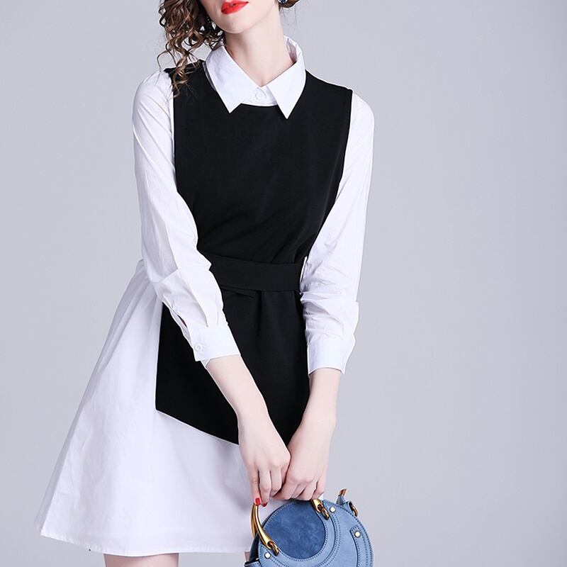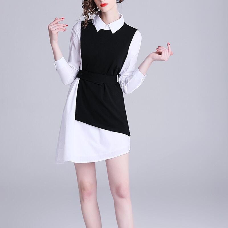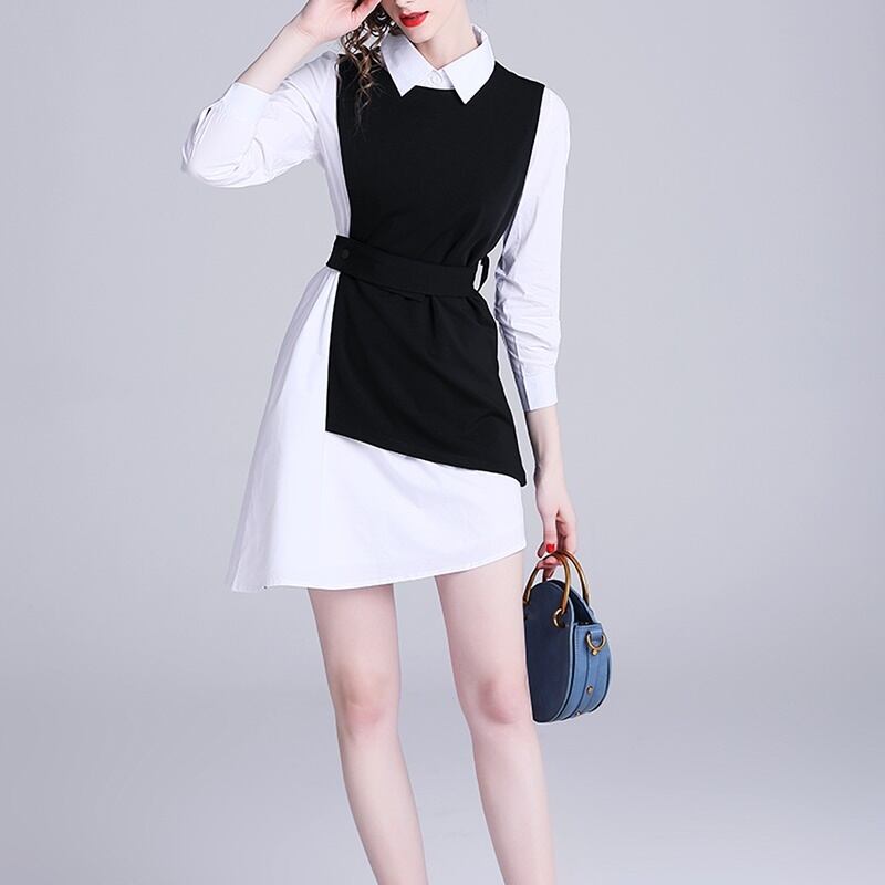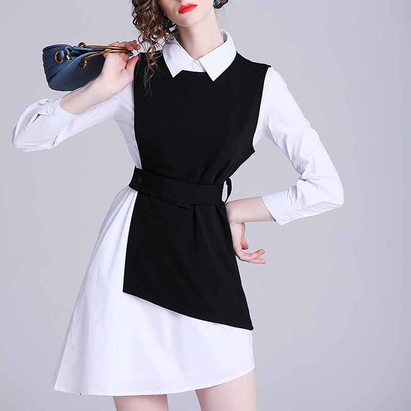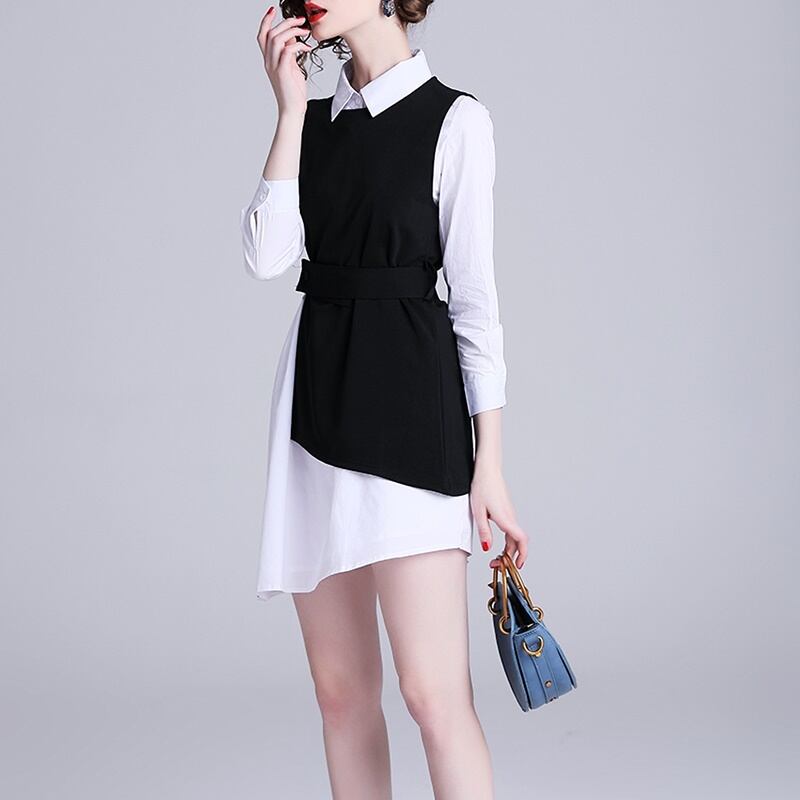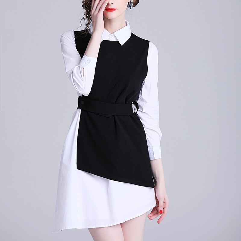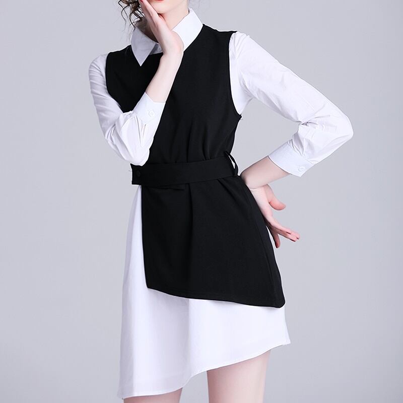 ツーピース 長袖 シャツ アシンメトリー ベスト セット *set091