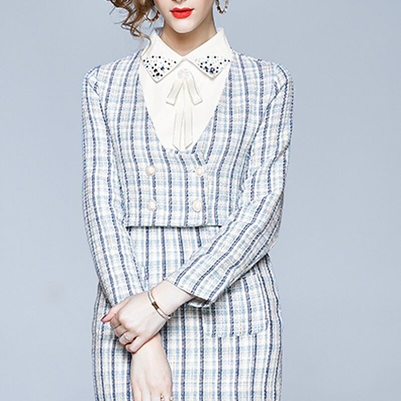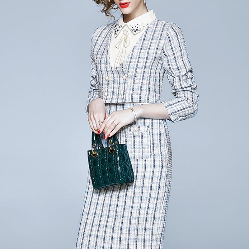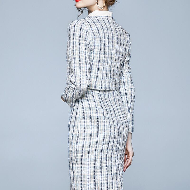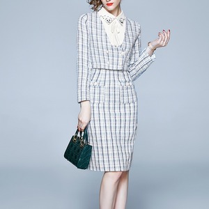 ツーピース チェック柄 スーツ トップス スカート セット *set093
