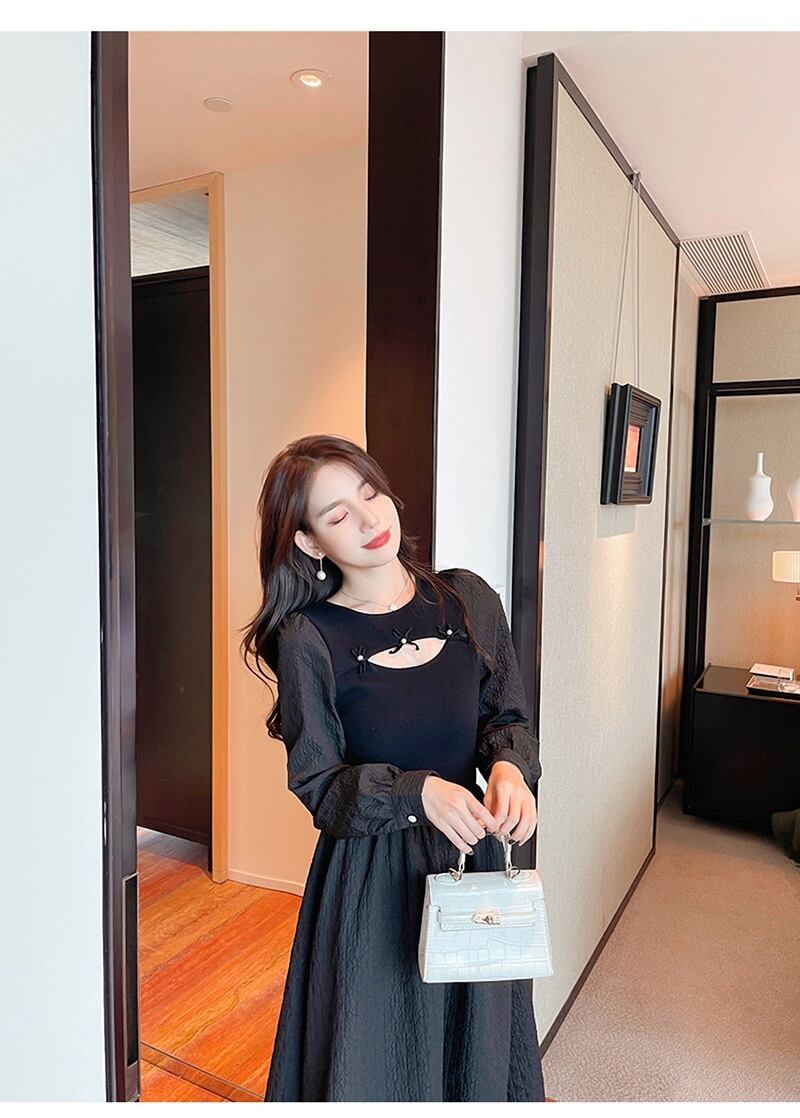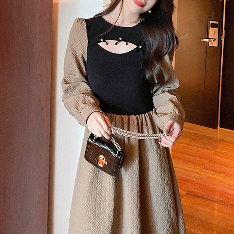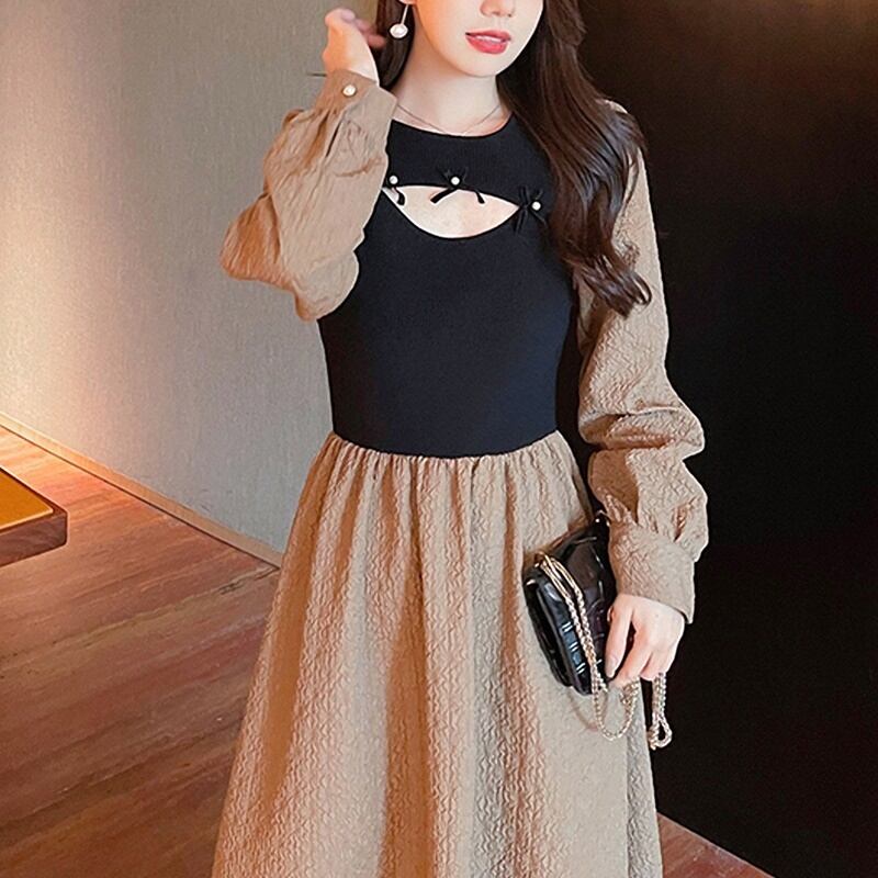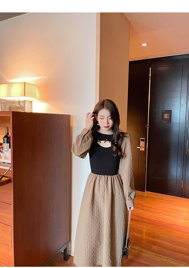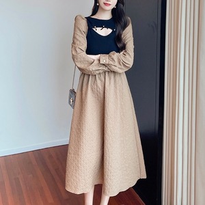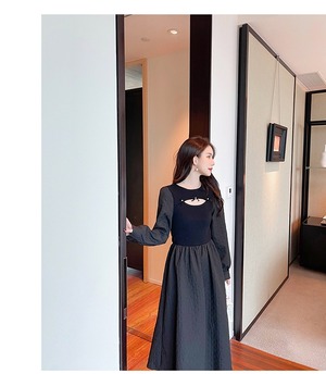 2カラー ラウンドネック バイカラー 長袖 ワンピース *on776