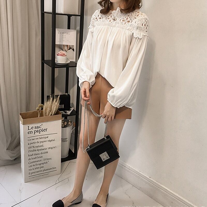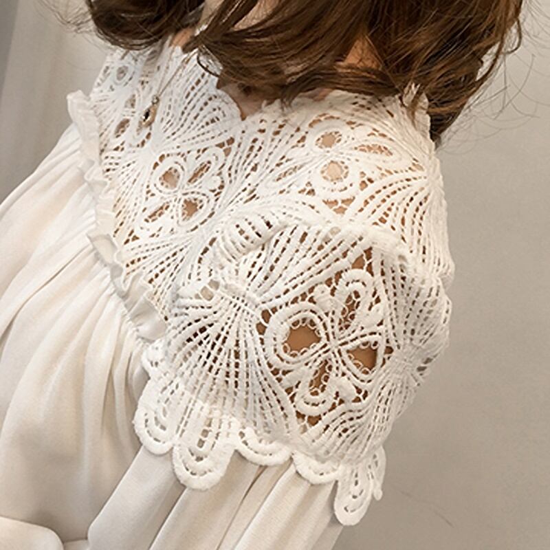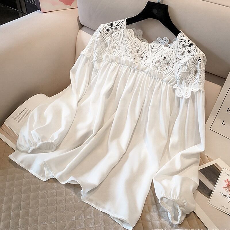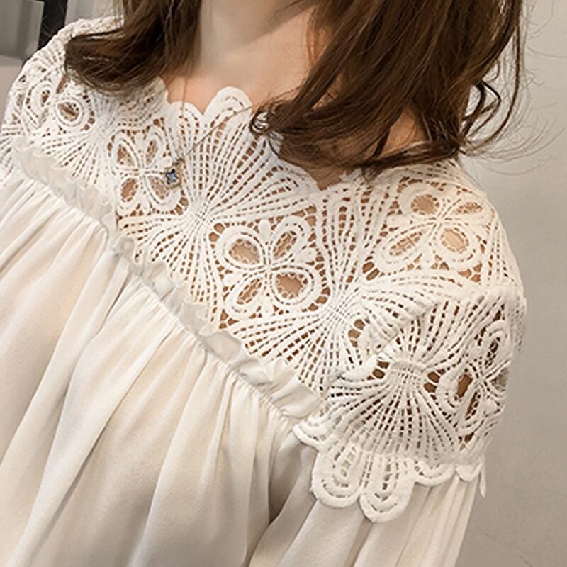 2カラー レース 長袖 シャツ ブラウス *bl399