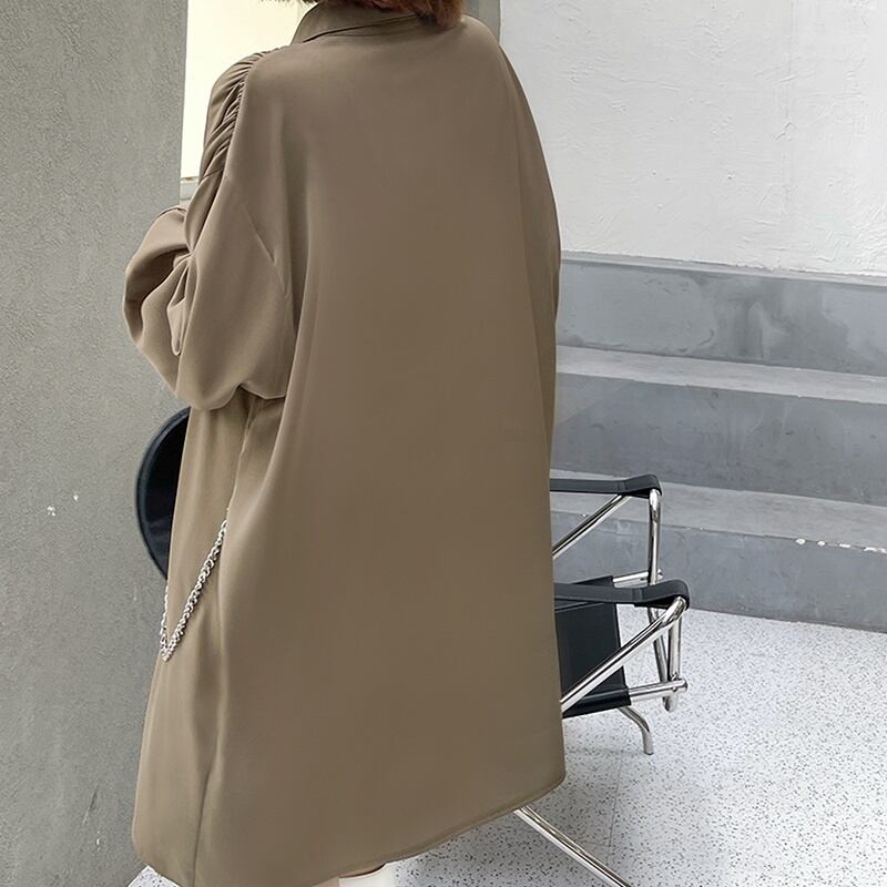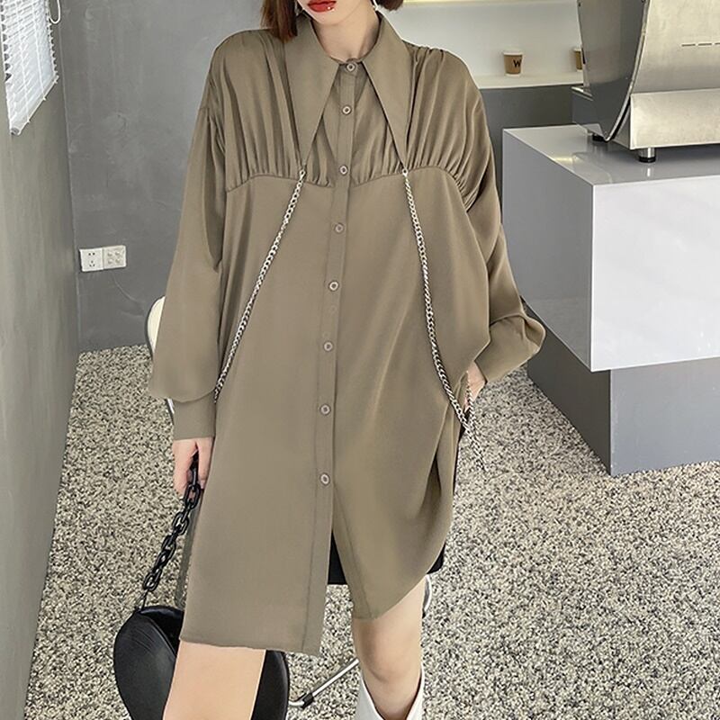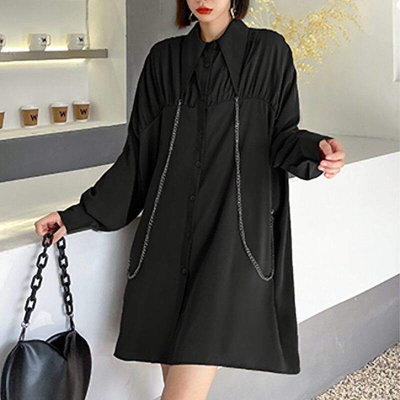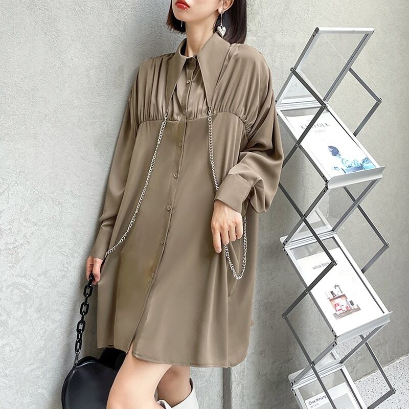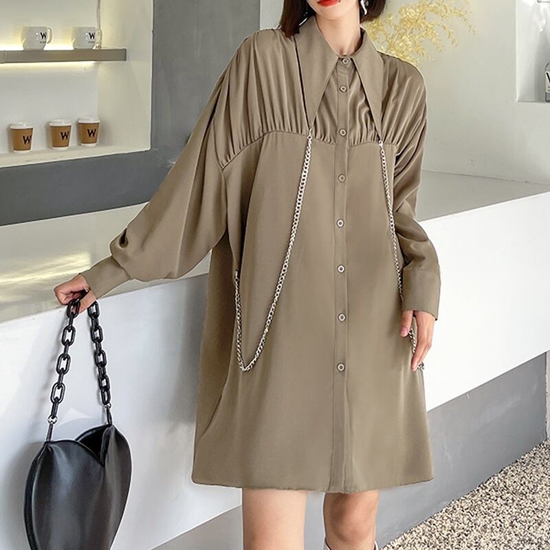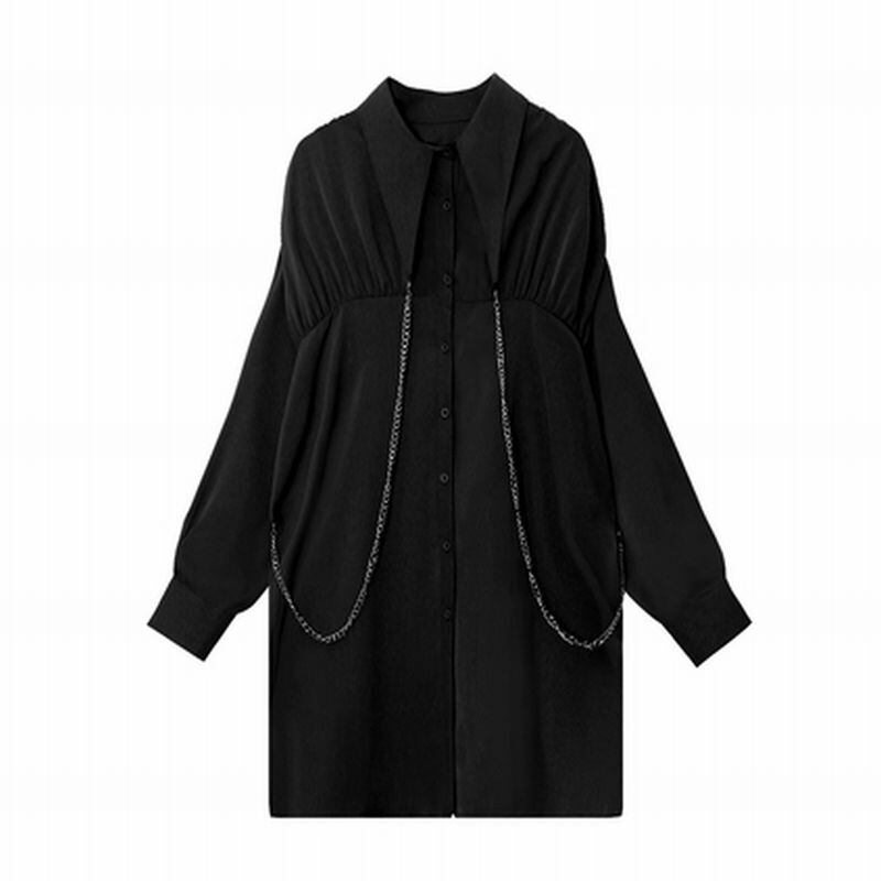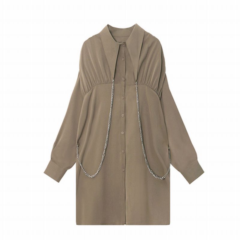 3カラー ビックカラー 長袖 シャツワンピース *on779