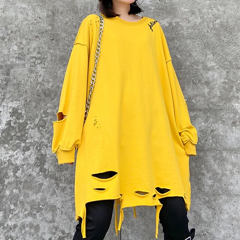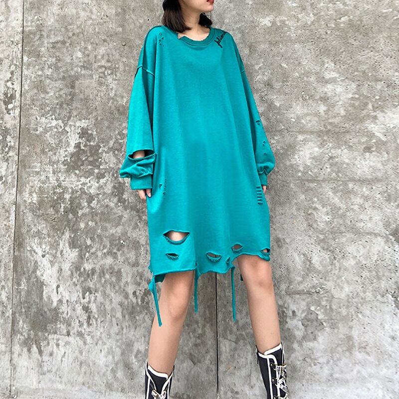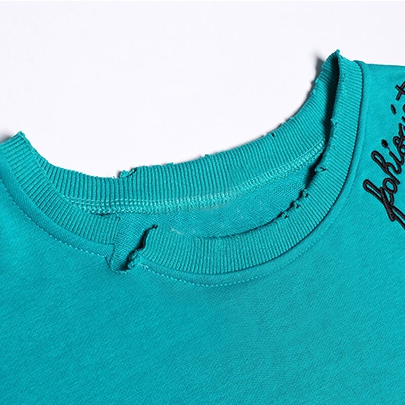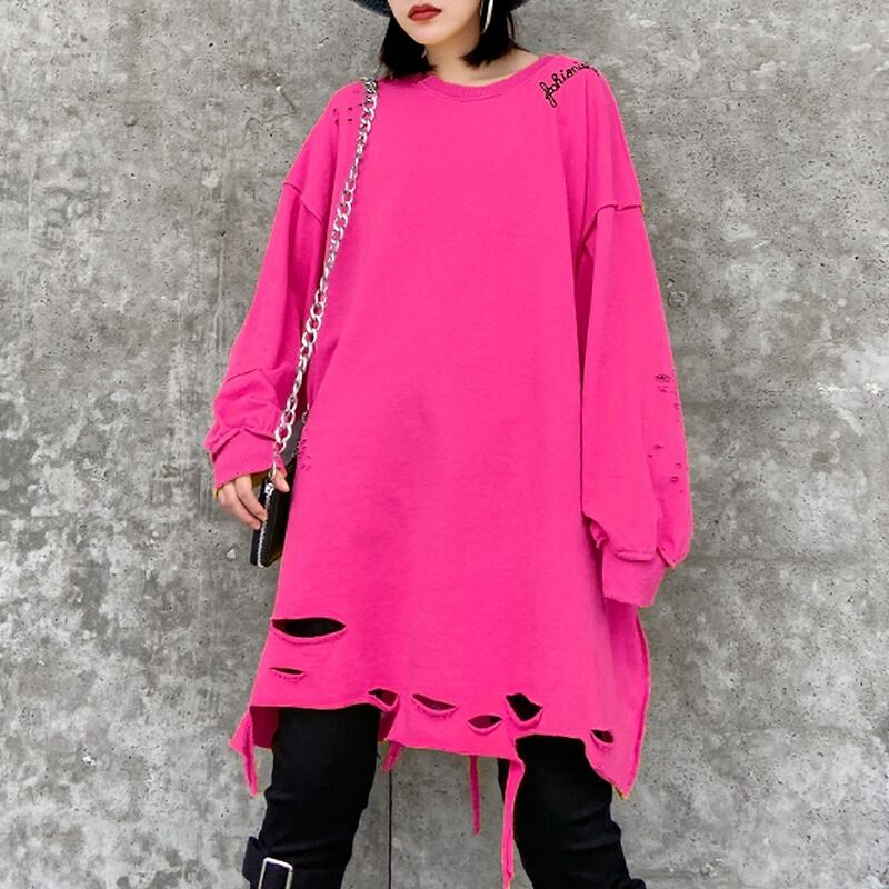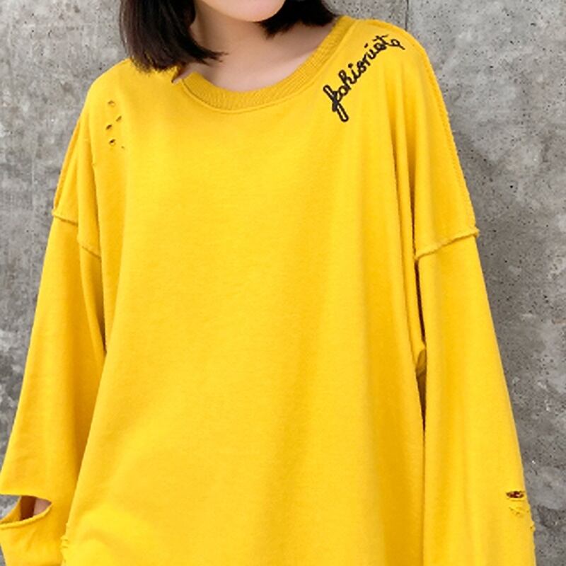 6カラー ダメージ ラウンドネック 長袖 シャツ ブラウス *bl401