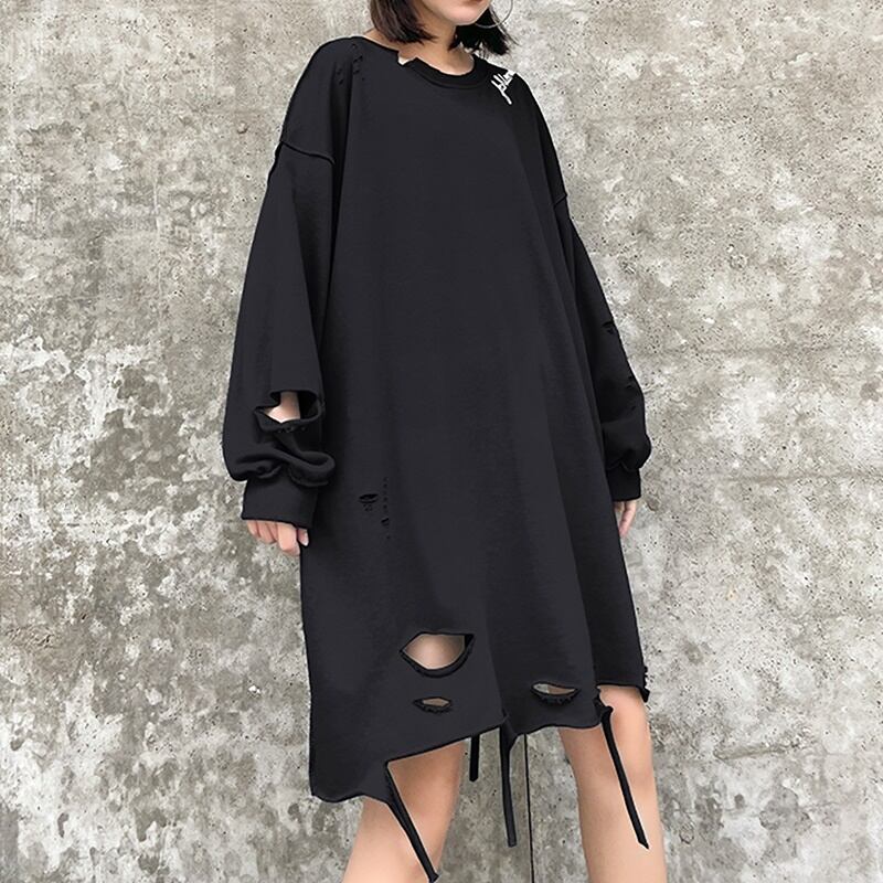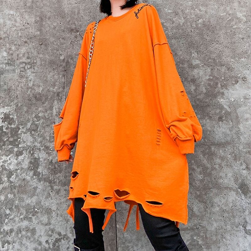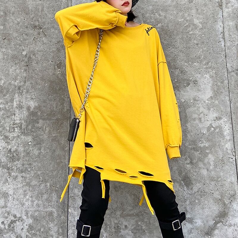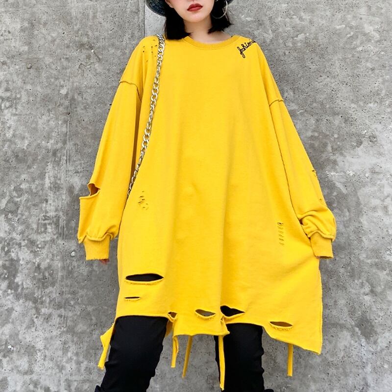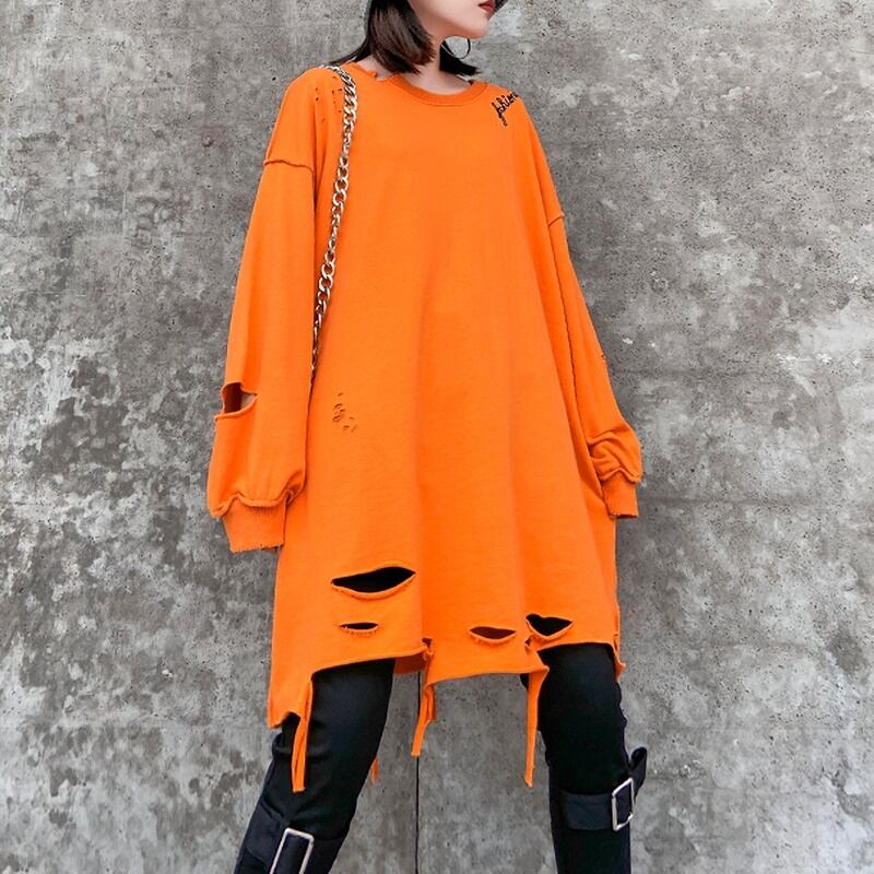 6カラー ダメージ ラウンドネック 長袖 シャツ ブラウス *bl401