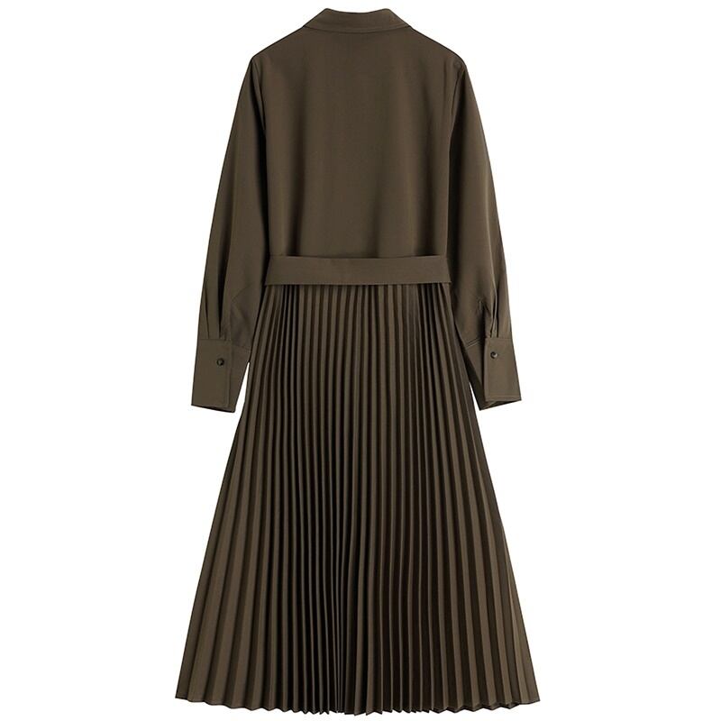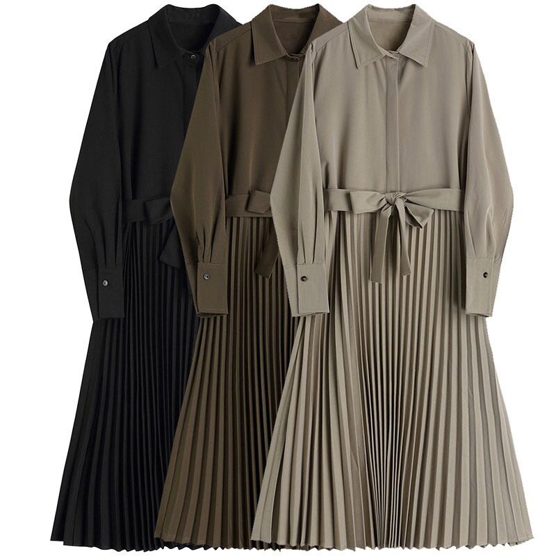 3カラー プリーツ リボン 長袖 ワンピース *on782