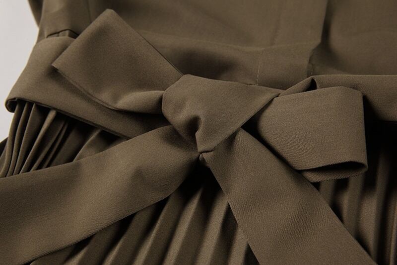 ウエストのリボン部分からプリーツの切り替えデザインがお洒落。