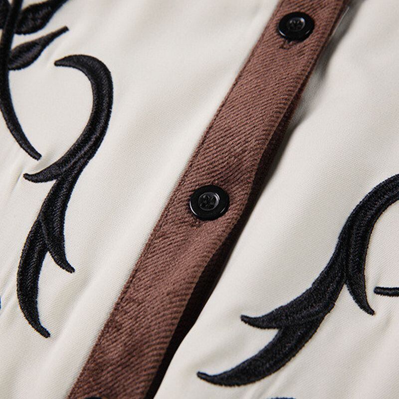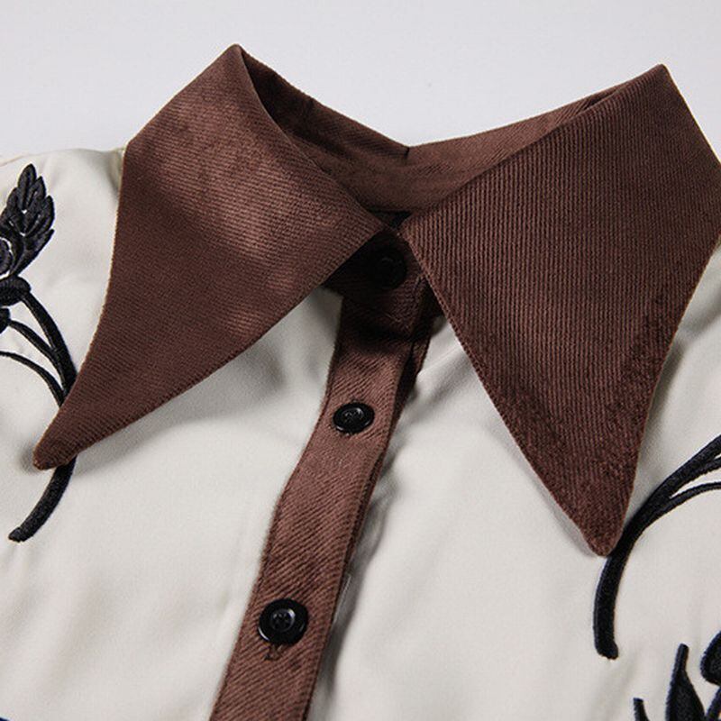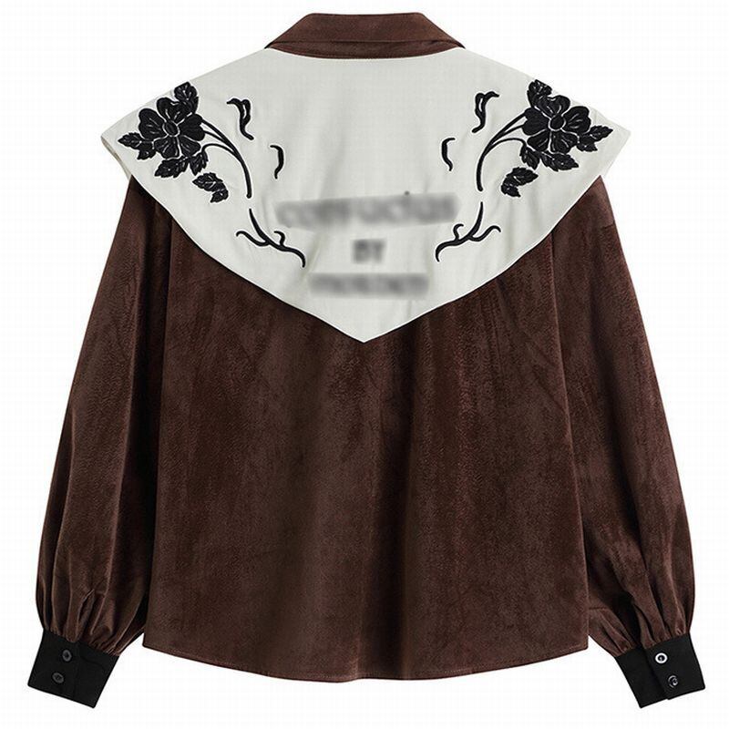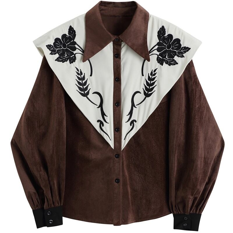 ビッグカラー コーデュロイ 刺繍 薔薇 長袖 シャツ ブラウス *bl405