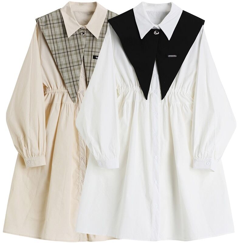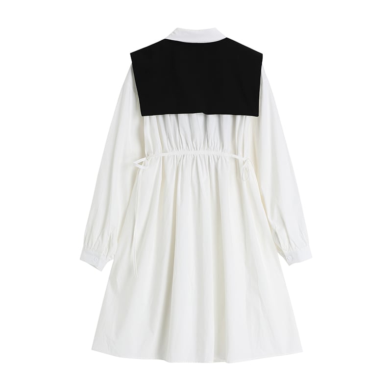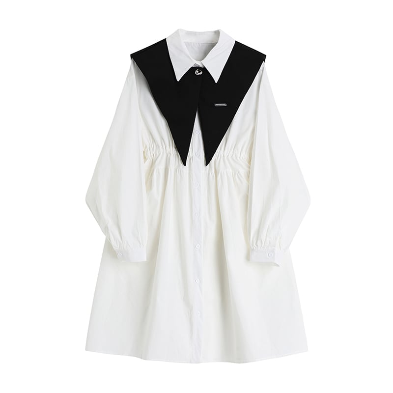 2カラー ビッグカラー つけ襟 Aライン 長袖 ワンピース *on783