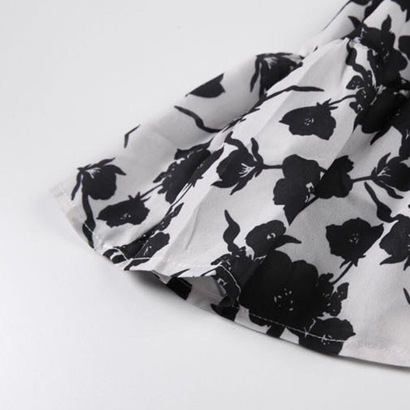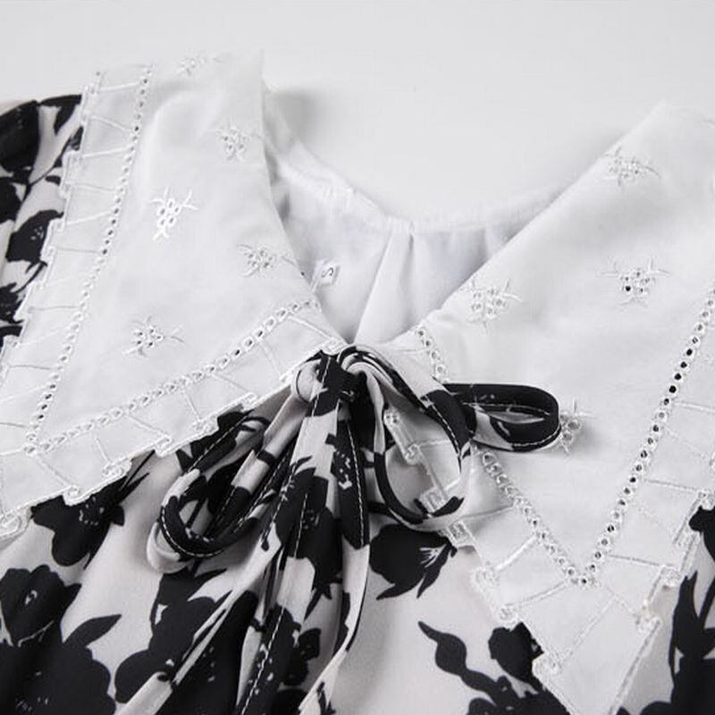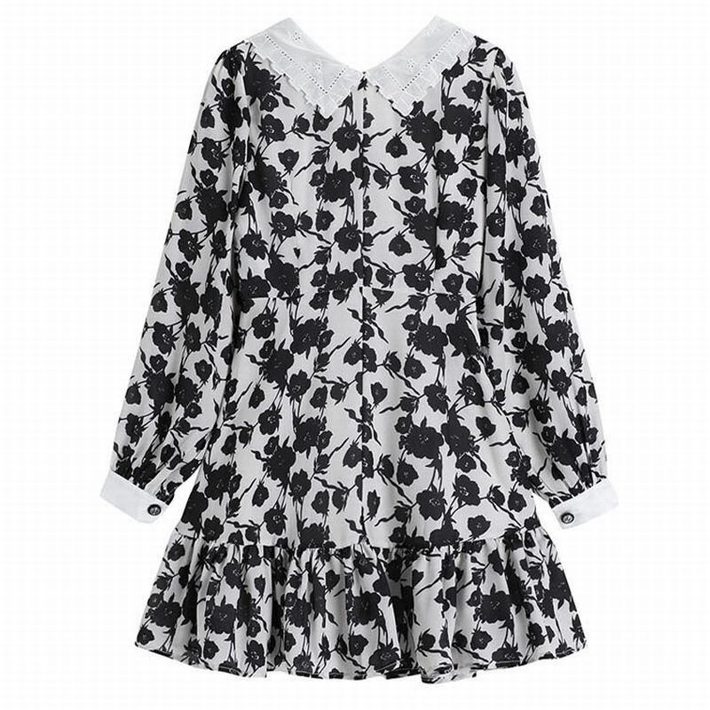 花柄 Vネック フリル襟 長袖 ワンピース *on784