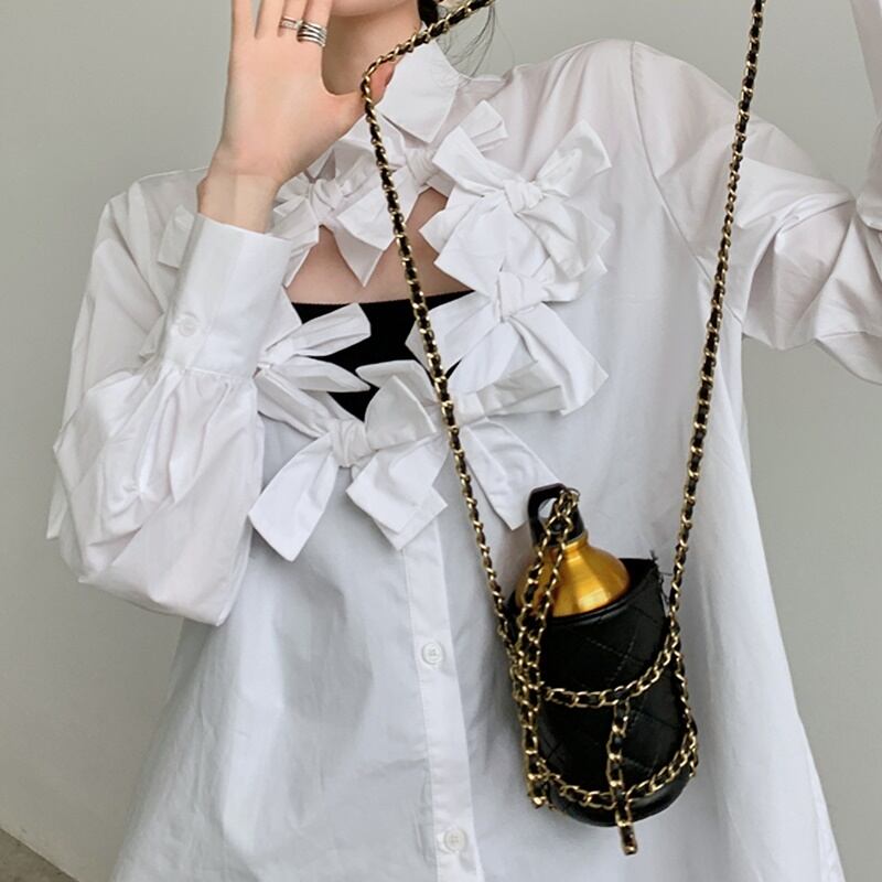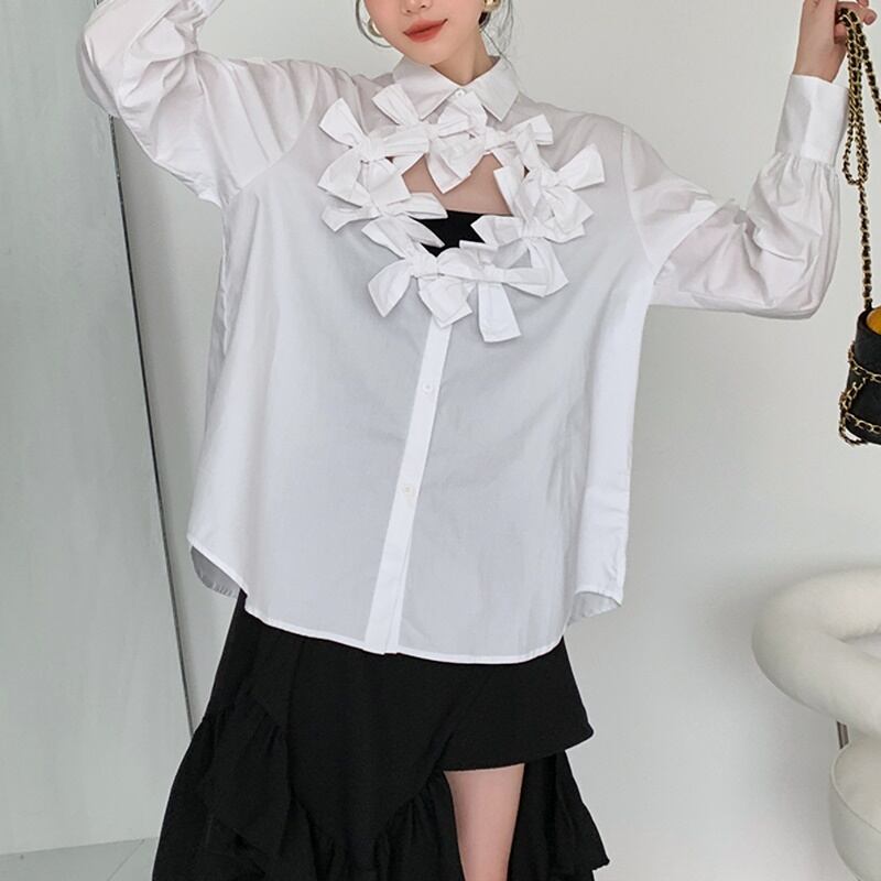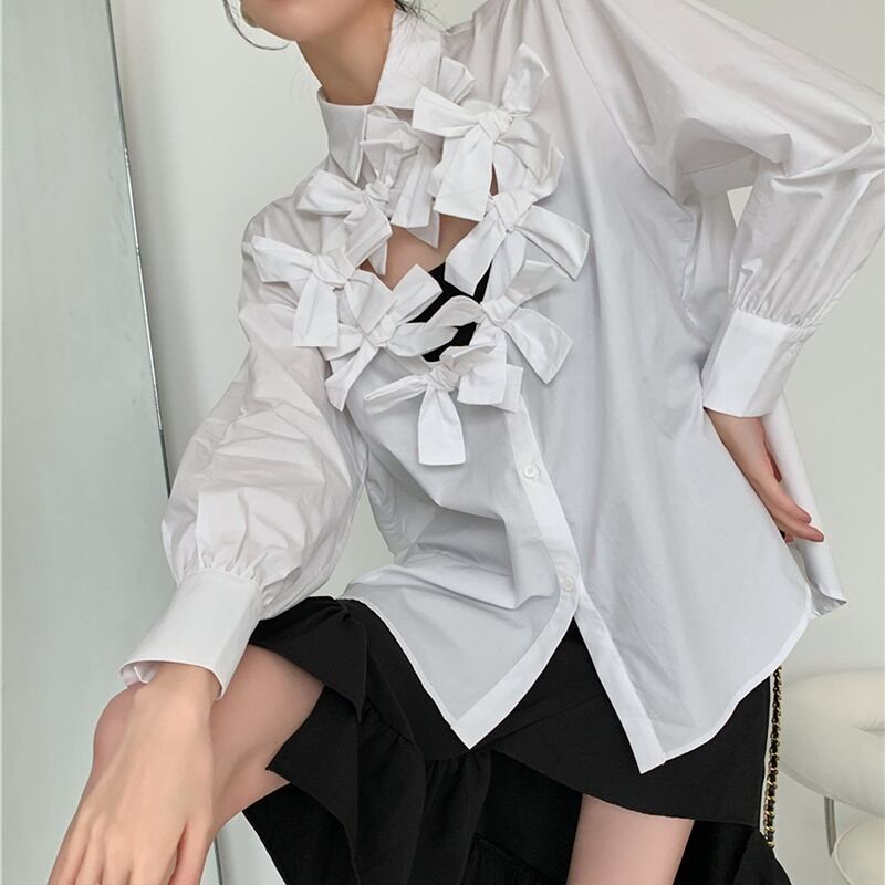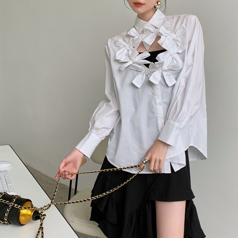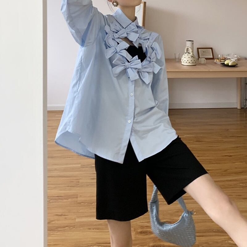 3カラー シースルー リボン 長袖 シャツ ブラウス *bl407