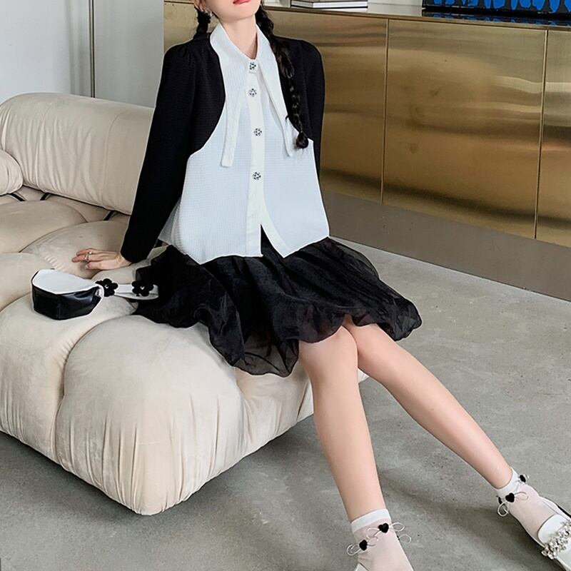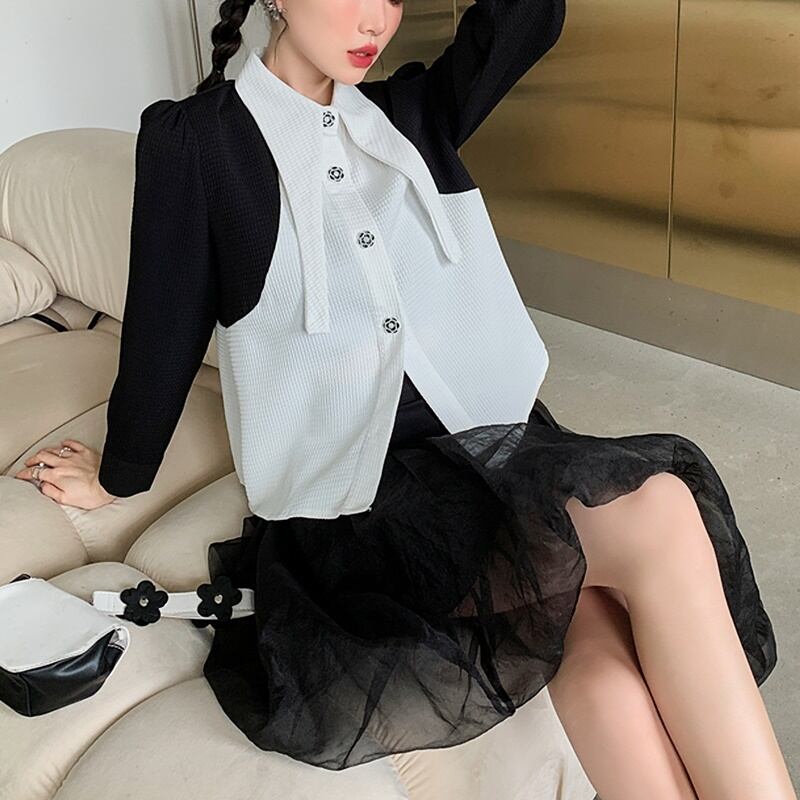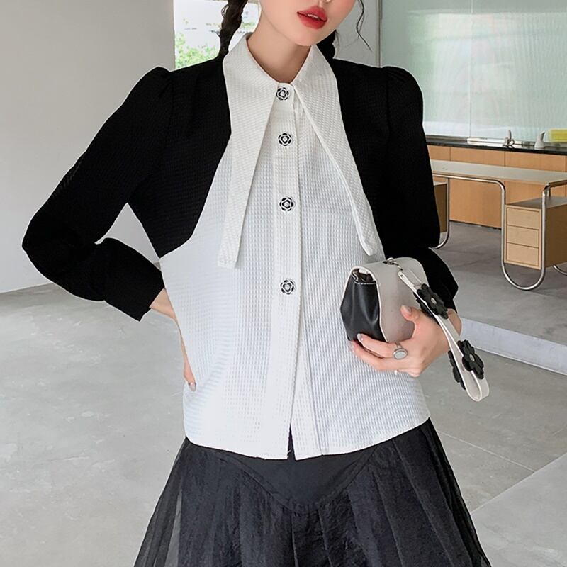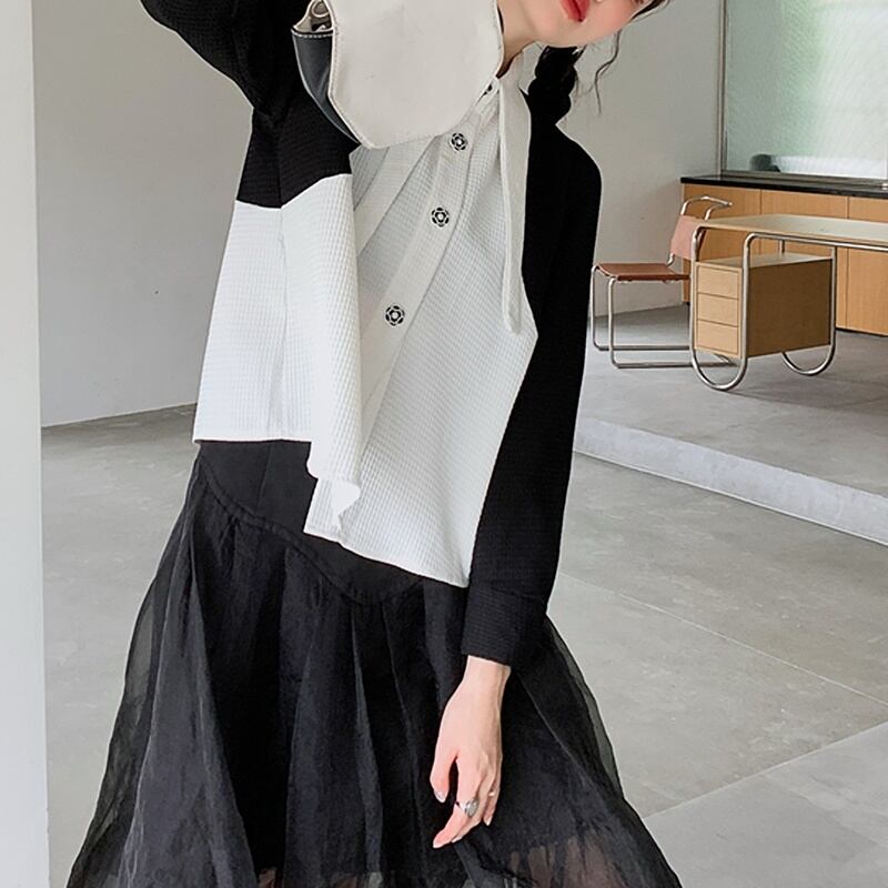 ビッグカラー 花ボタン バイカラー 長袖 シャツ ブラウス *bl412