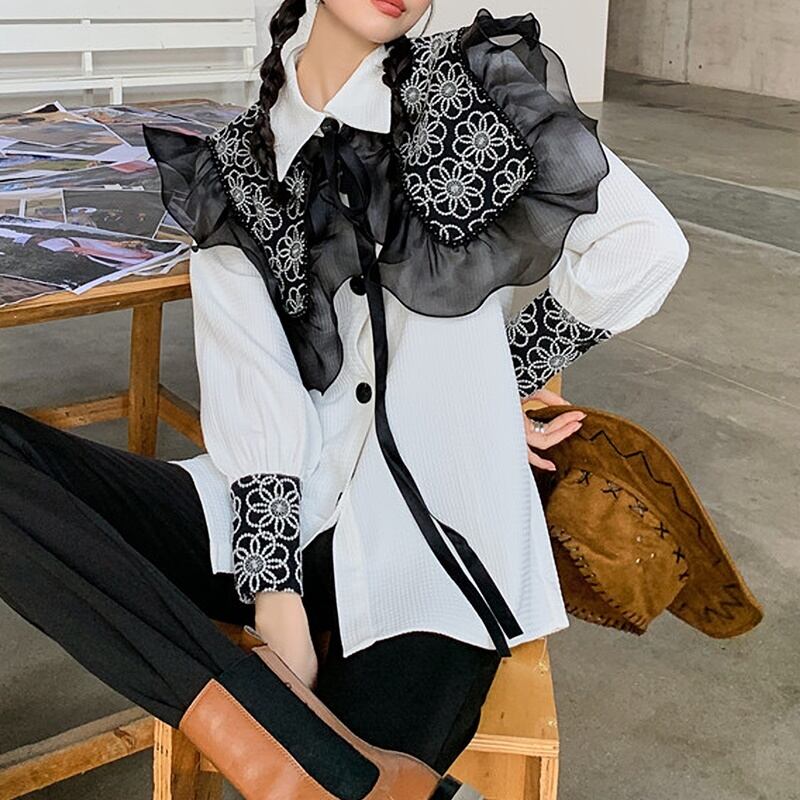 大きなフリル襟がアクセントになっています。