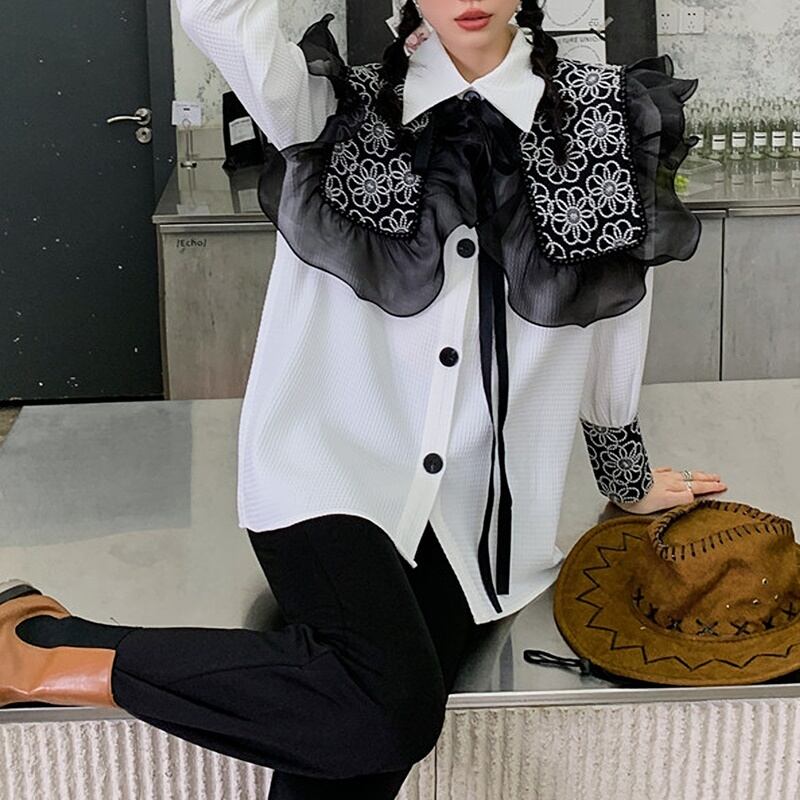 花柄 リボン フリル 長袖 シャツ ブラウス *bl413