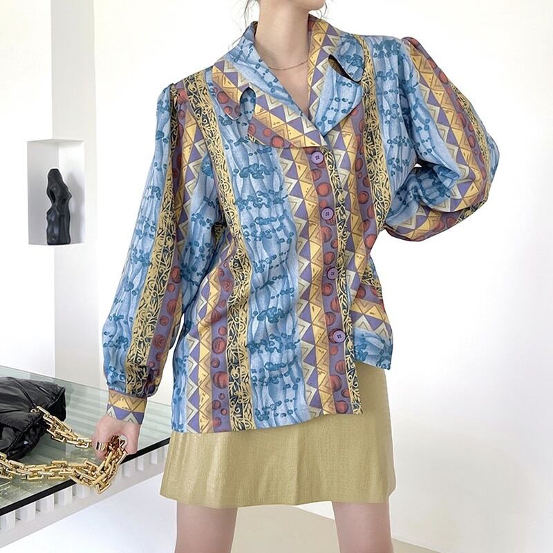 エスニック柄 Vネック 長袖 シャツ ブラウス *bl414