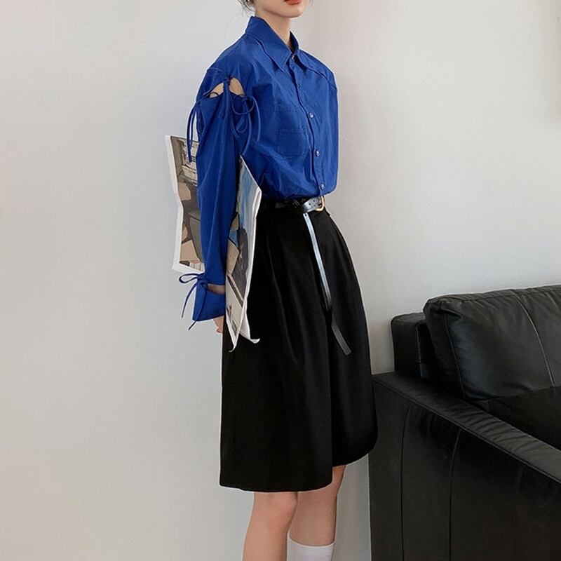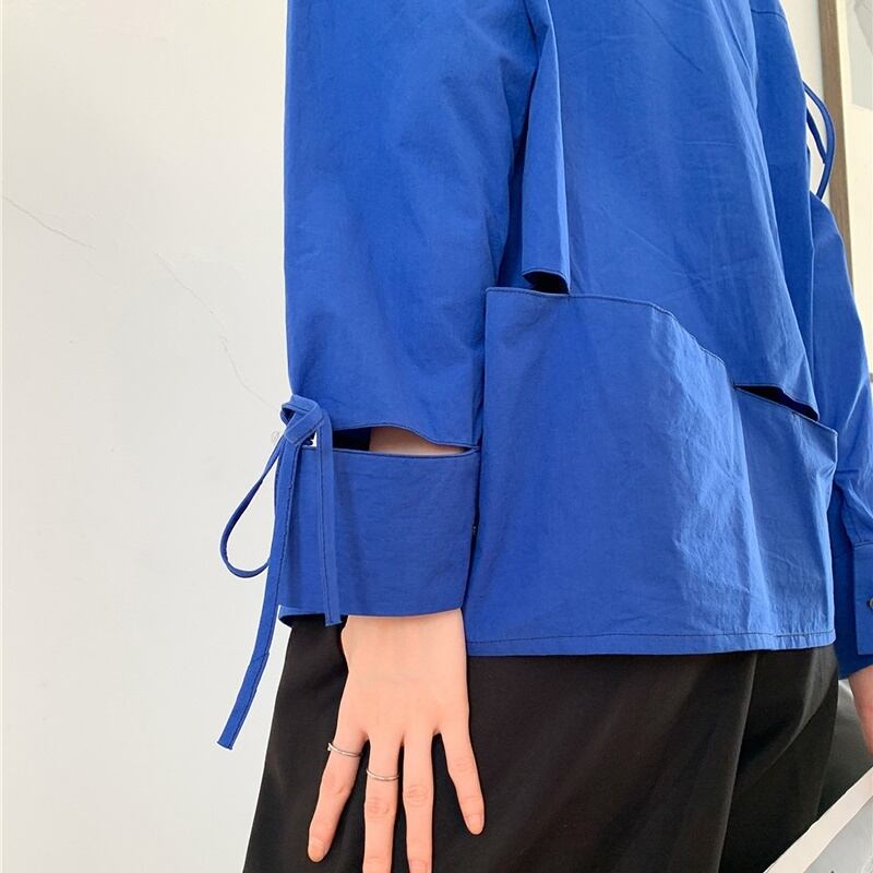 リボン 襟付き シースルー 長袖 シャツ *bl416