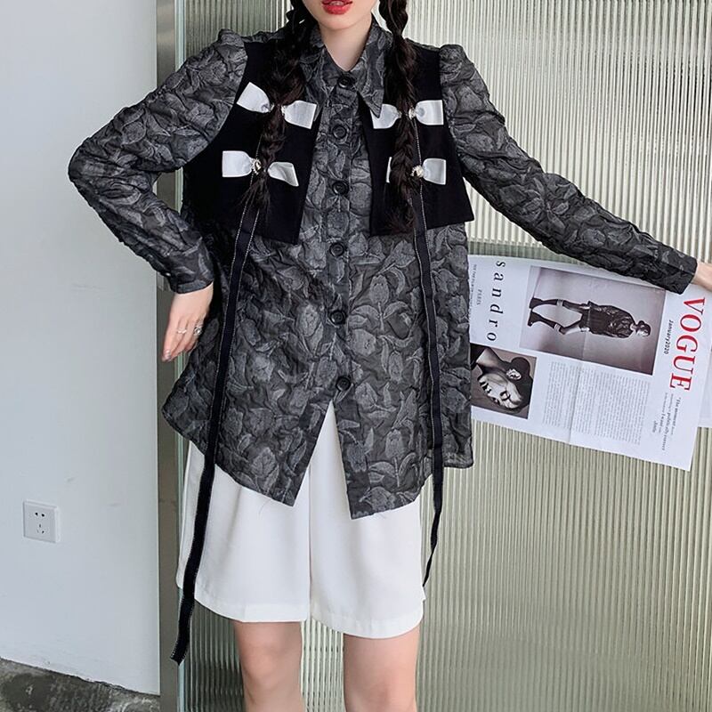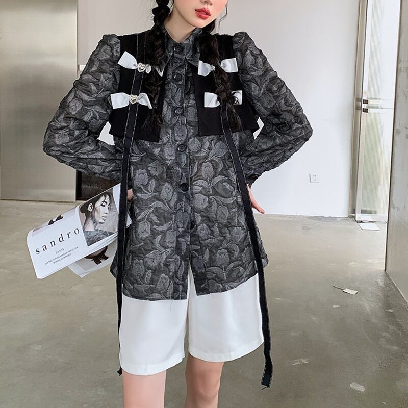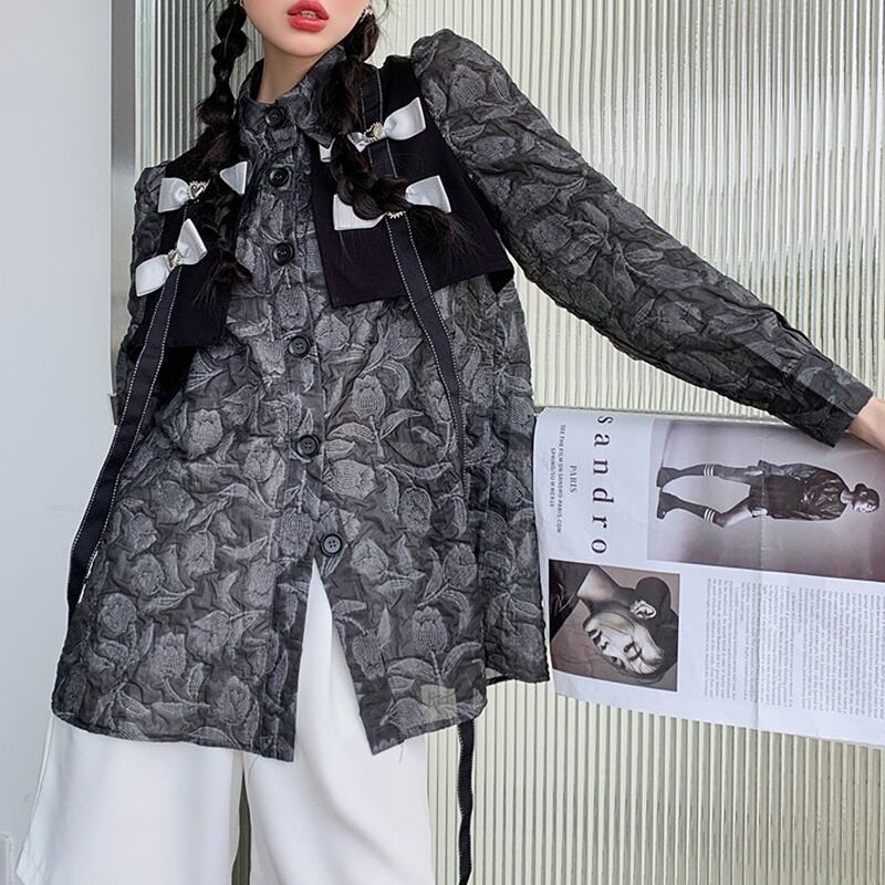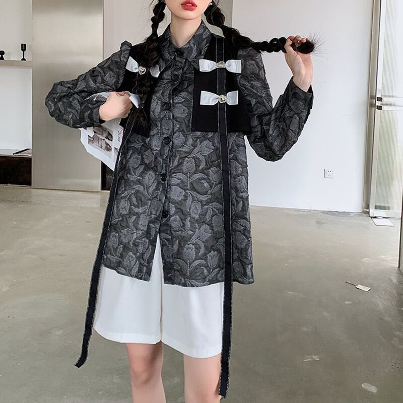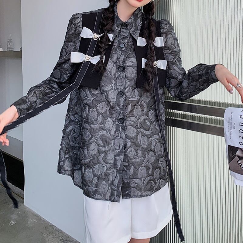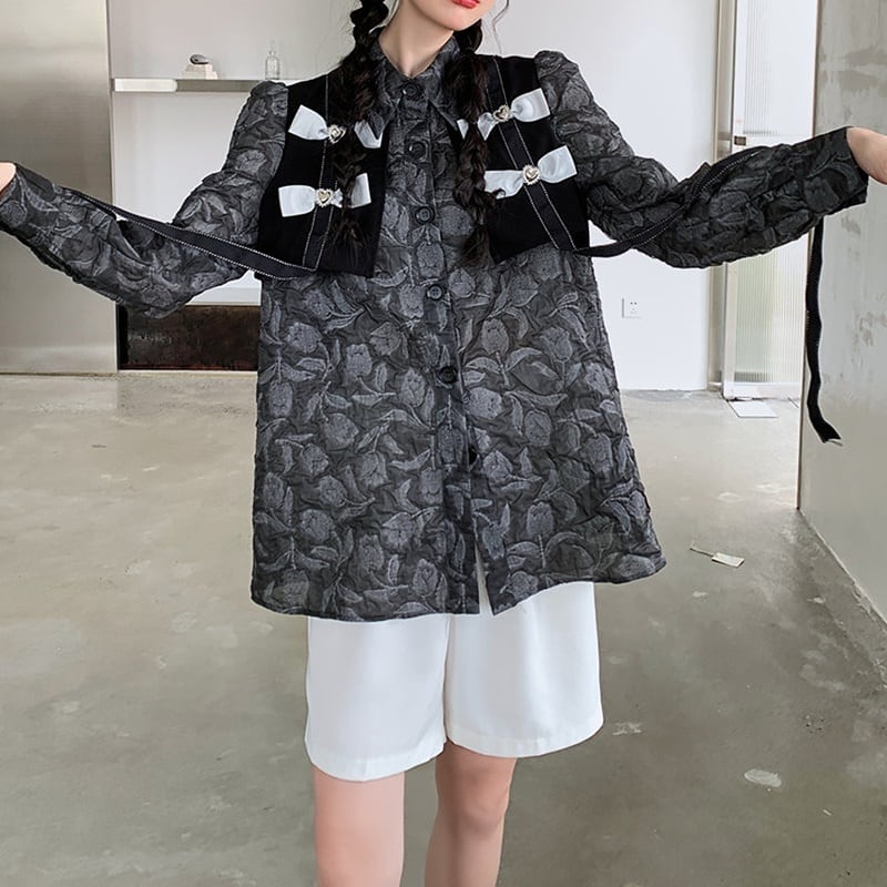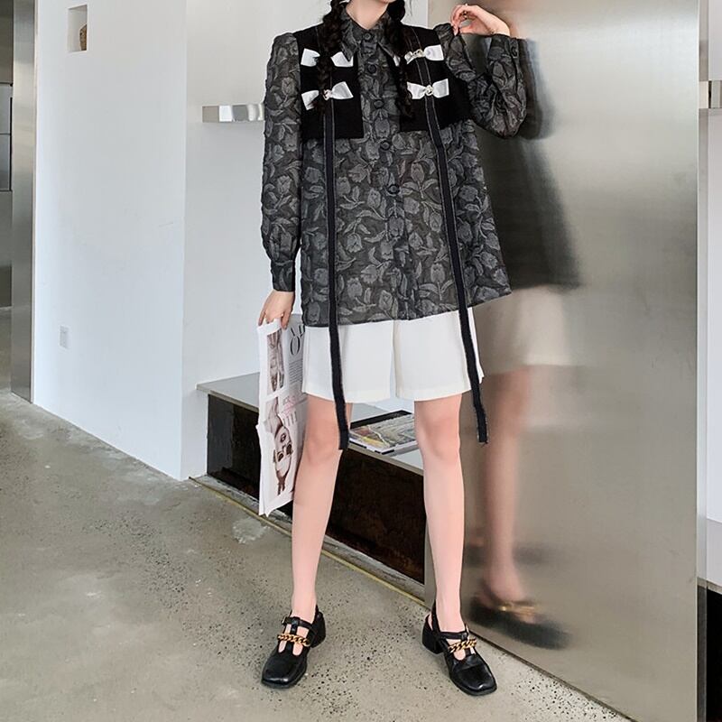 シック リボン フローラル 長袖 シャツ *bl419