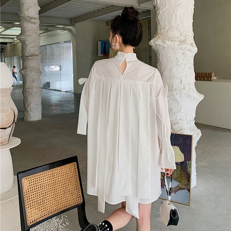 シアー フリル襟 リボン 長袖 ワンピース *on786