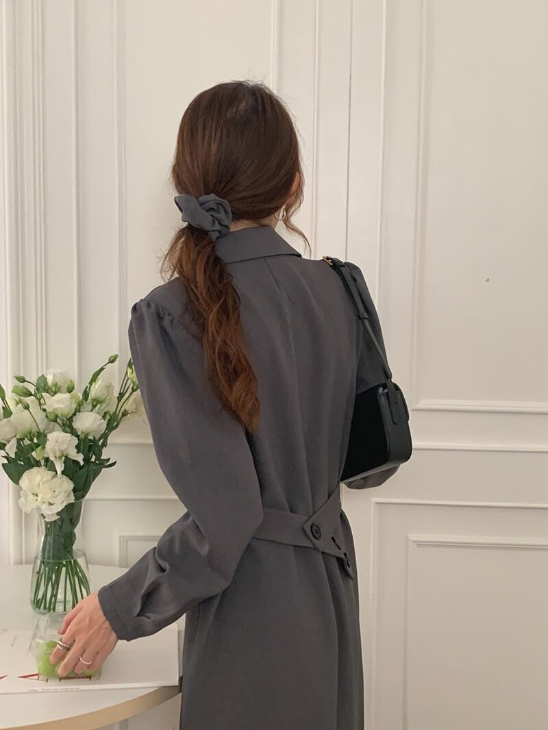 3カラー ボタン Vネック 襟つき 長袖 ワンピース *on790
