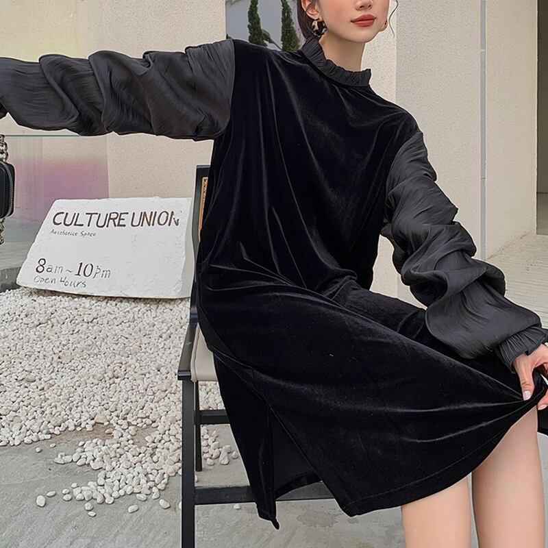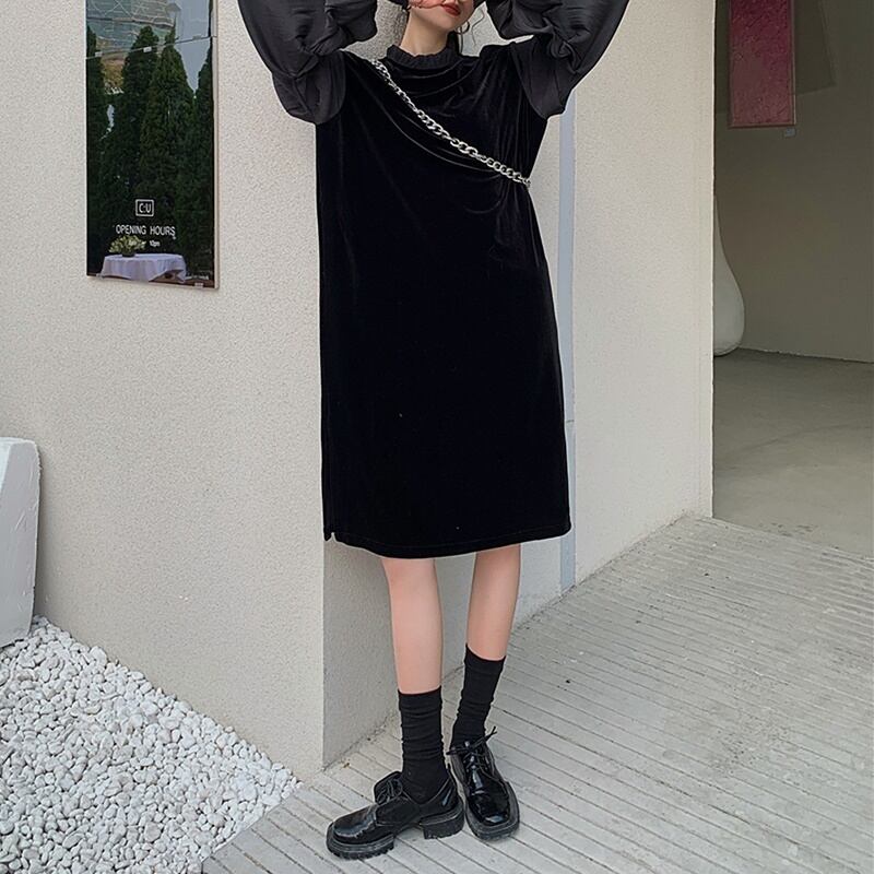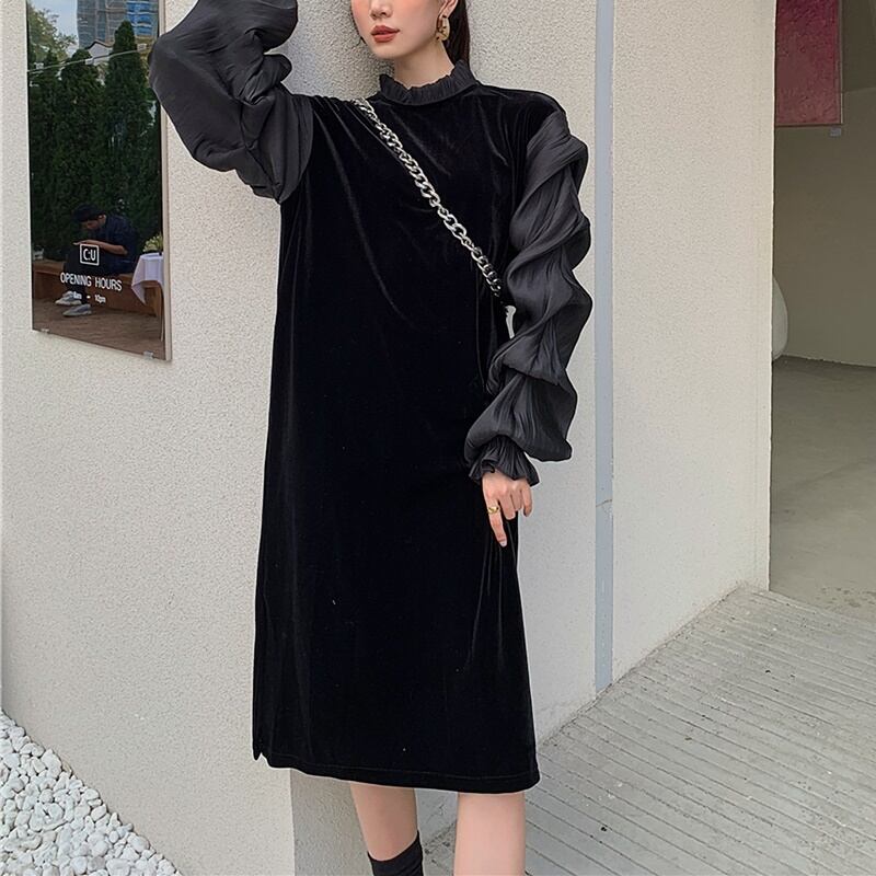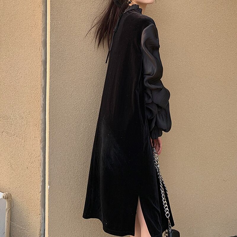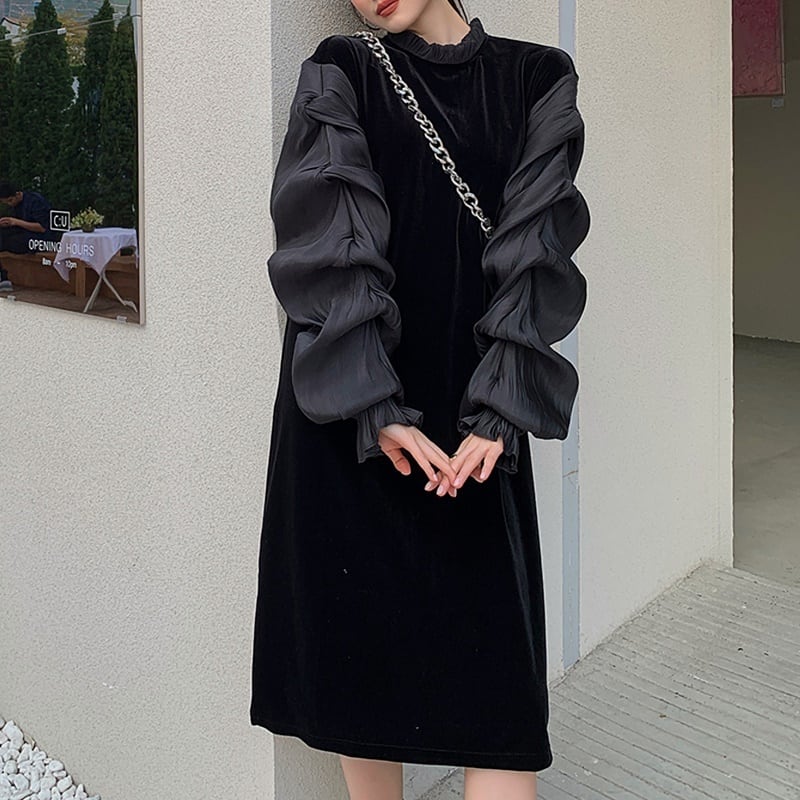 シック ハイネック ボリューム袖 長袖 ワンピース *on794