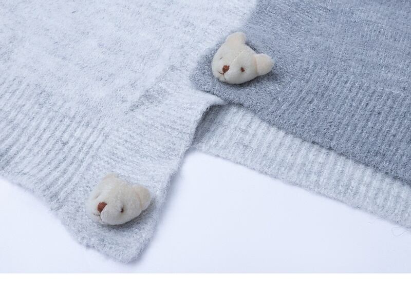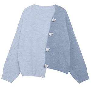 アシンメトリー クマ ラウンドネック 長袖 ニット セーター *ks122