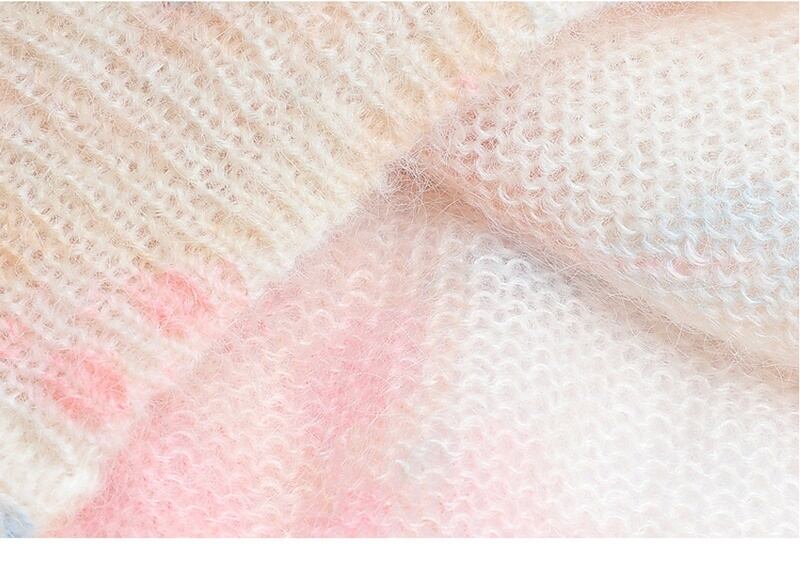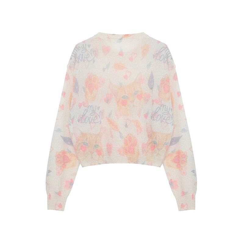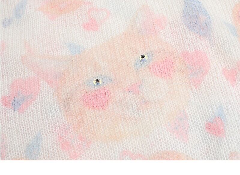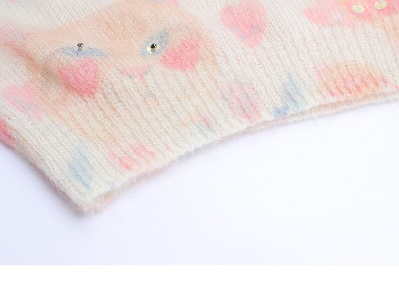 優しい色合いのピンクの猫柄がフェミニンなセーター。