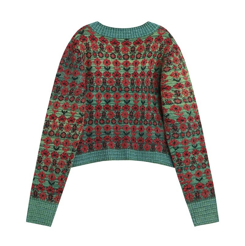 花柄 スクエアネック 長袖 ニット カーディガン *ca090