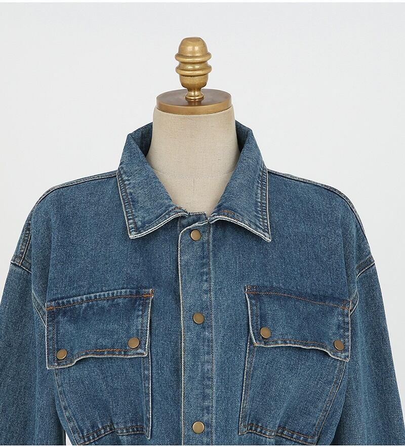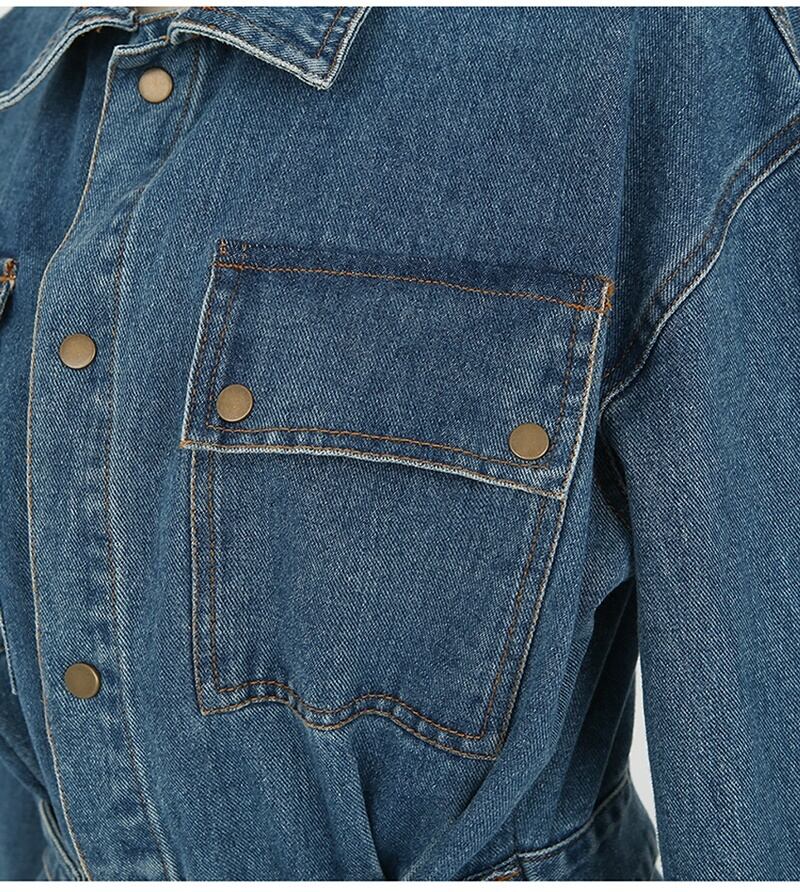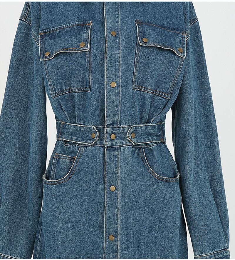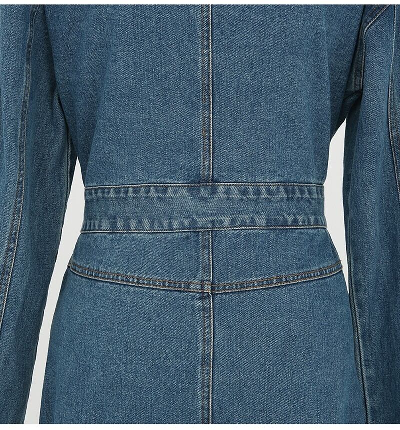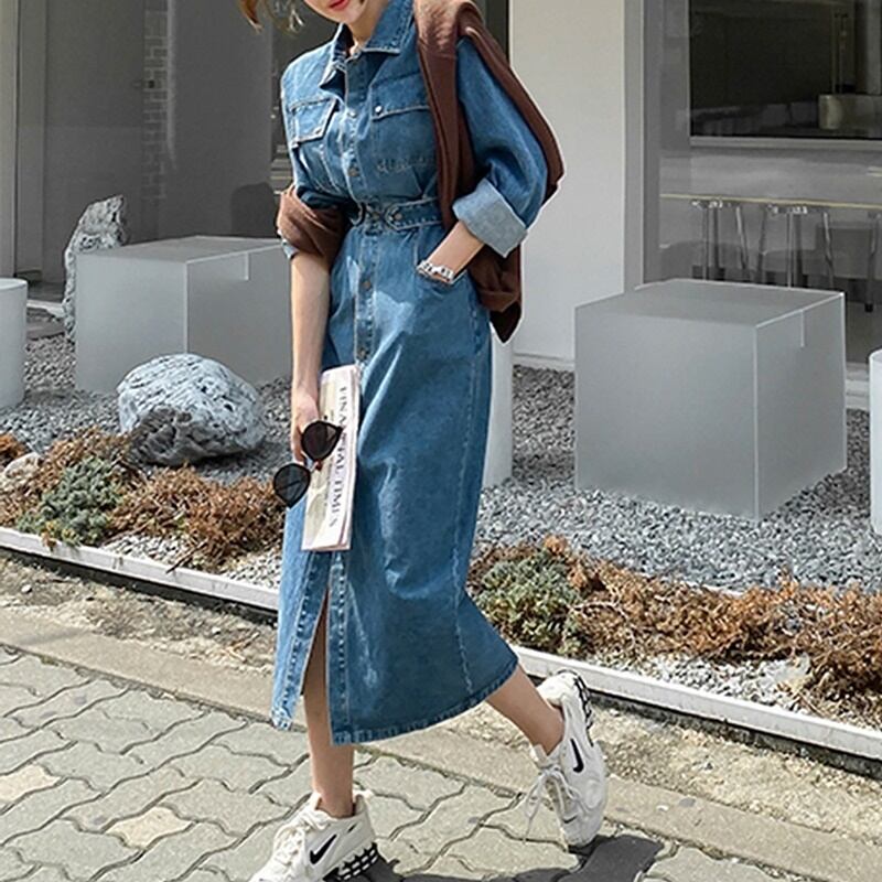 デニム 長袖 スリット ロング丈 ワンピース *on807