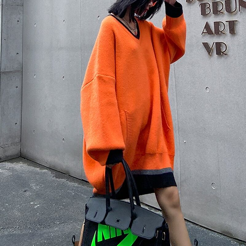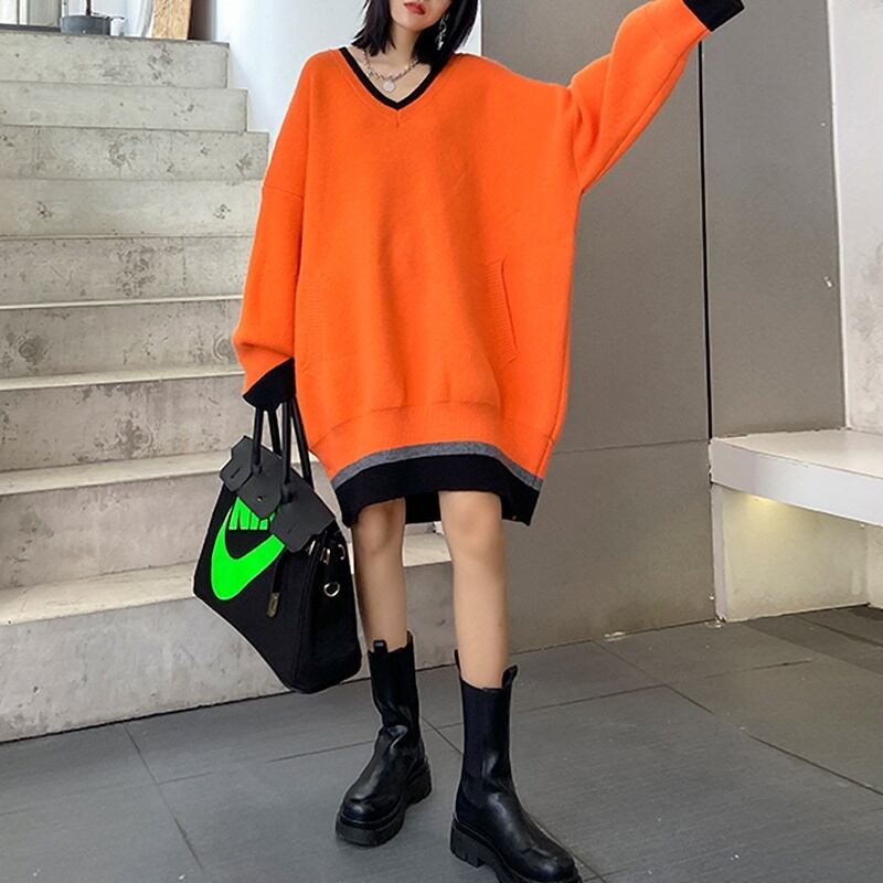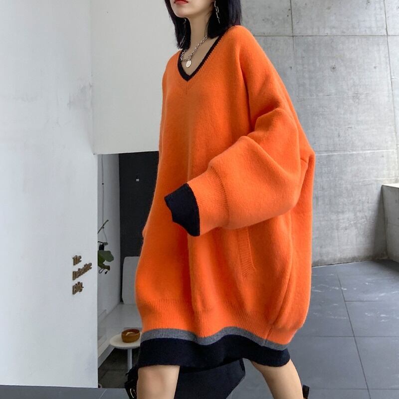 3カラー ボーダー Vネック 長袖 ニット セーター *ks135