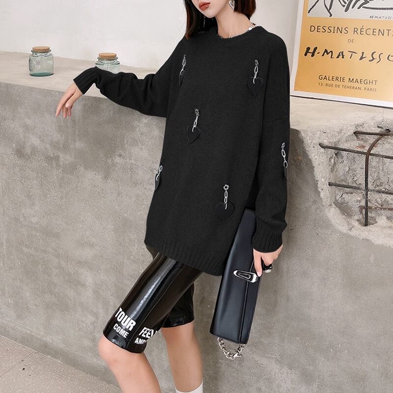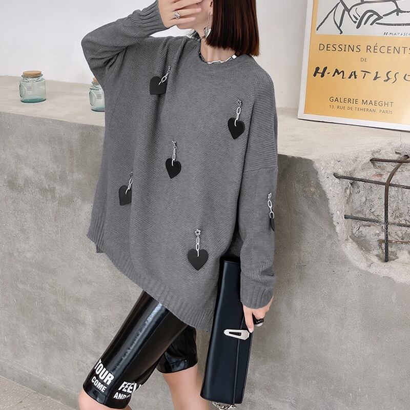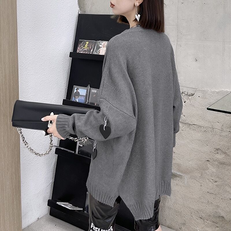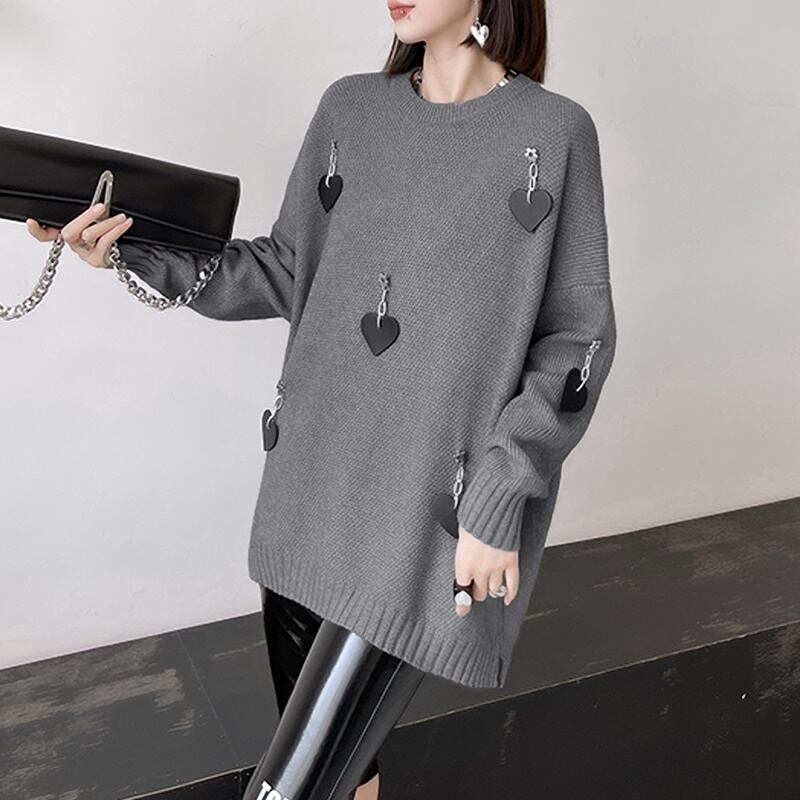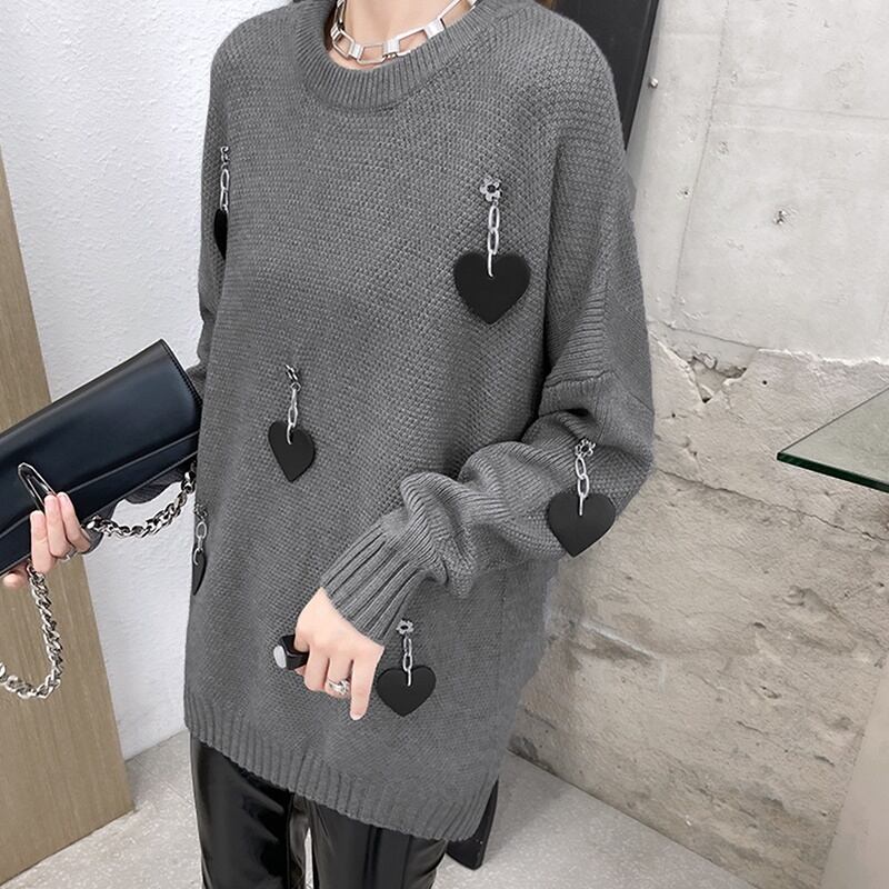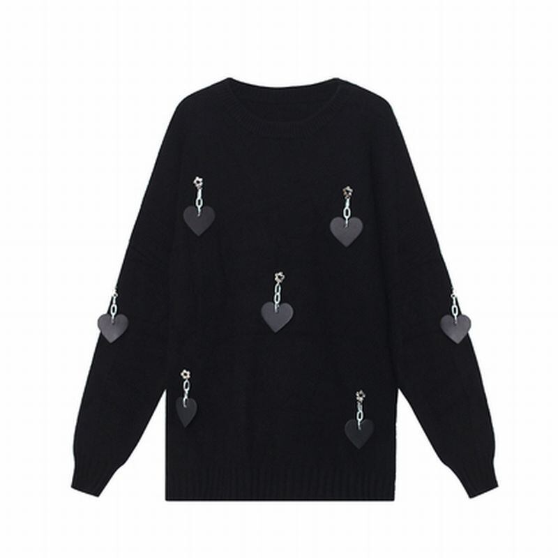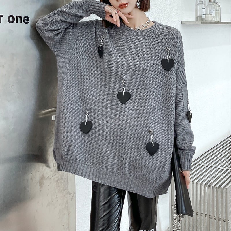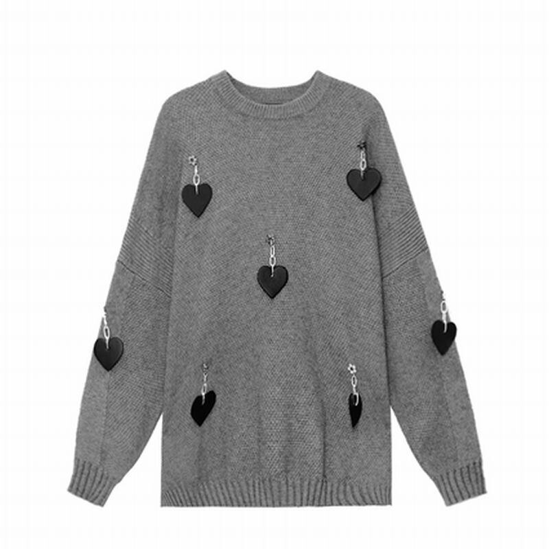 2カラー ラウンドネック ハート 長袖 ニット セーター *ks138