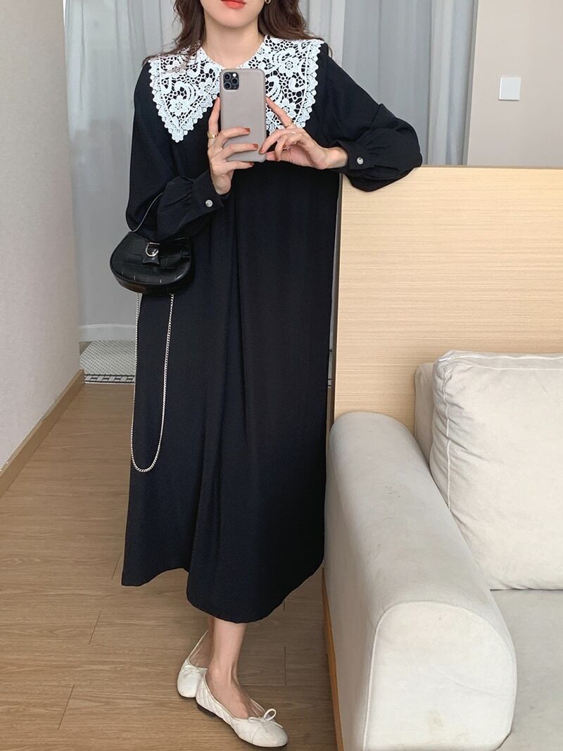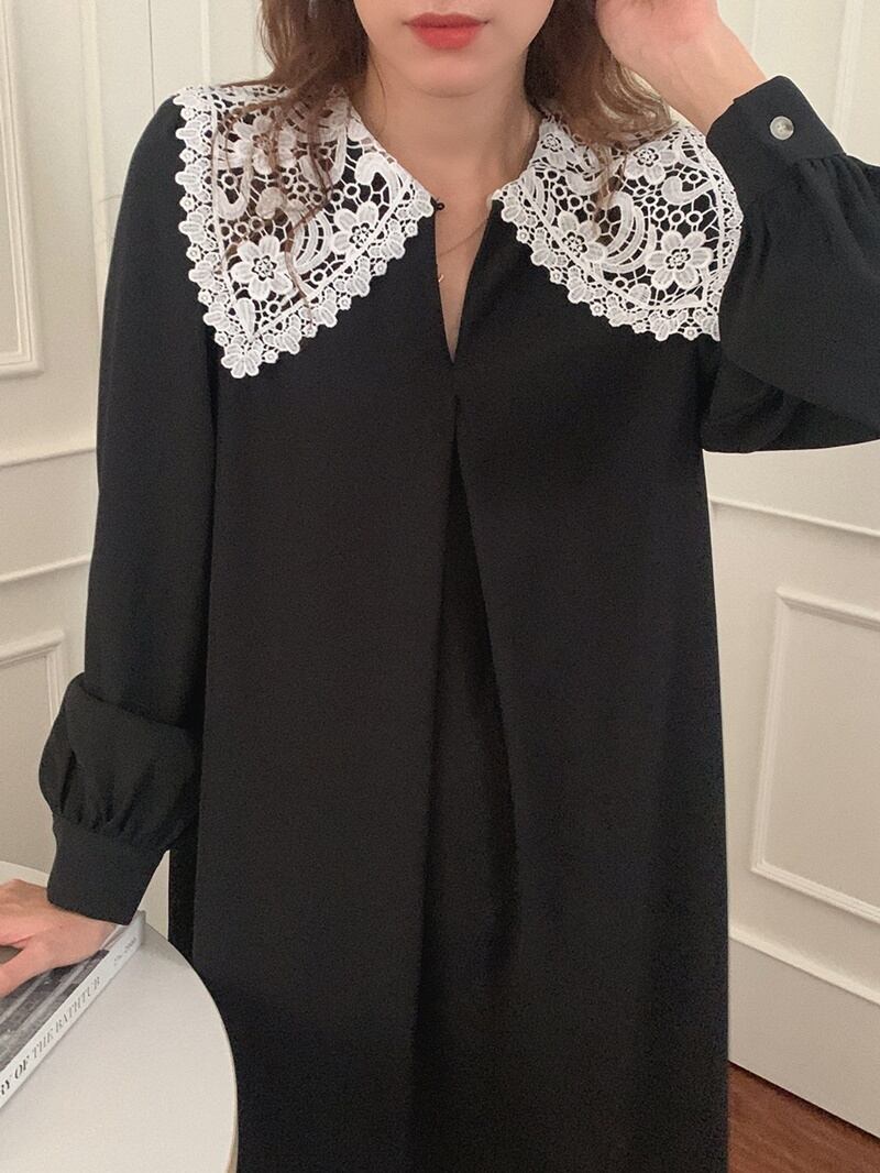 3カラー レース ラウンドネック 長袖 ワンピース *on842