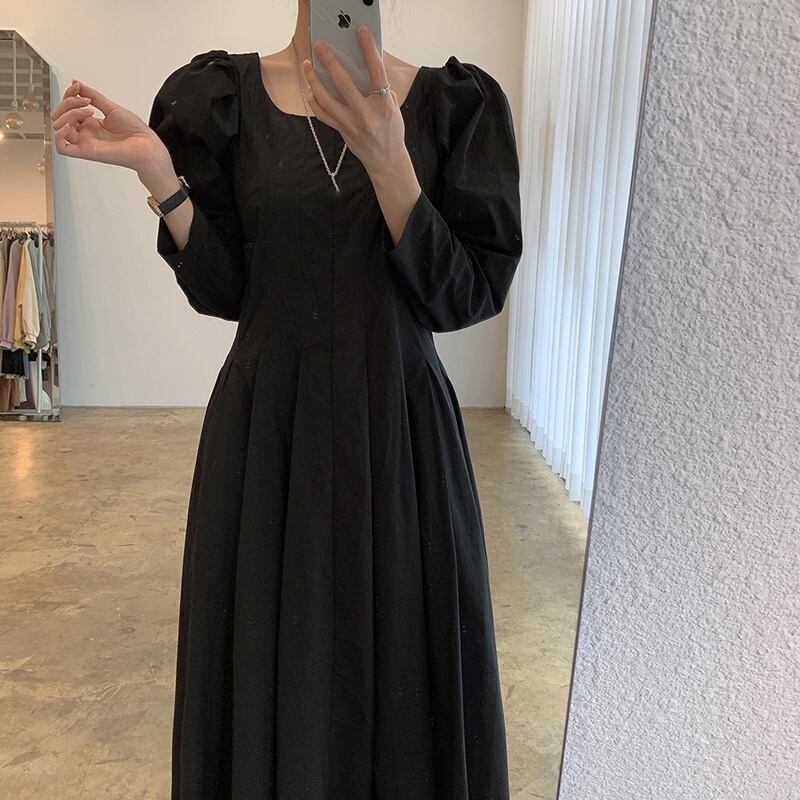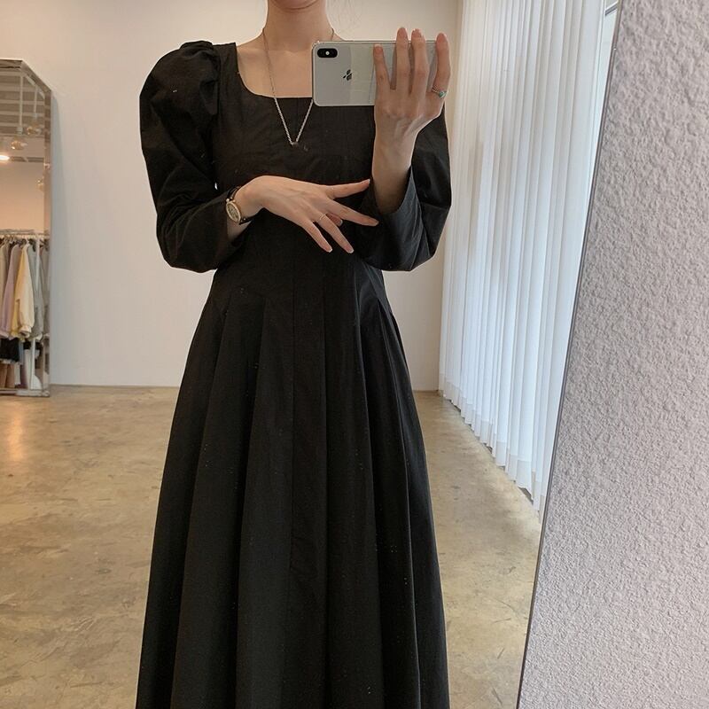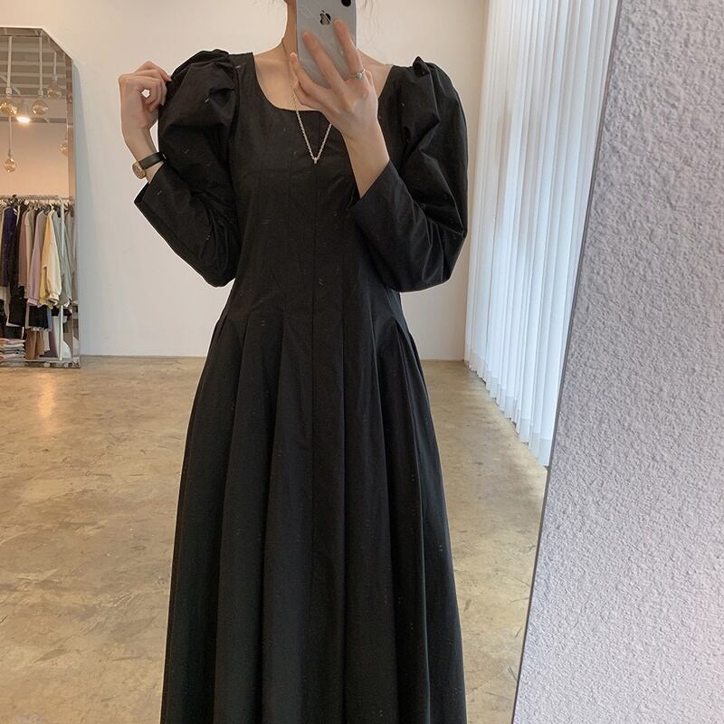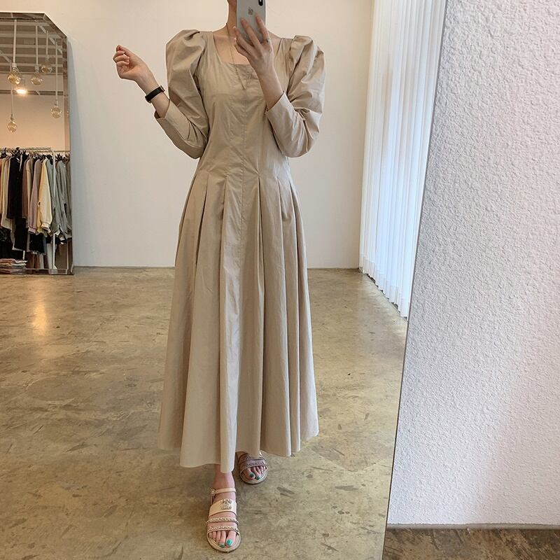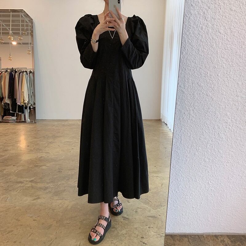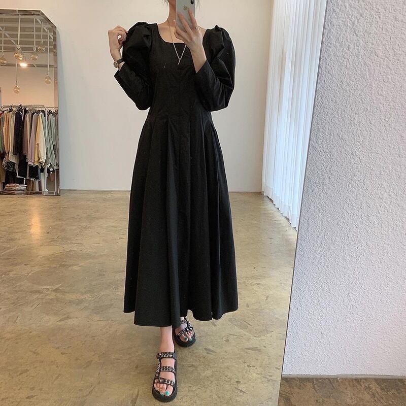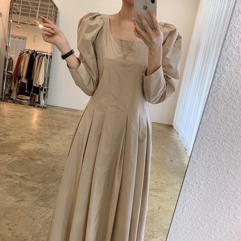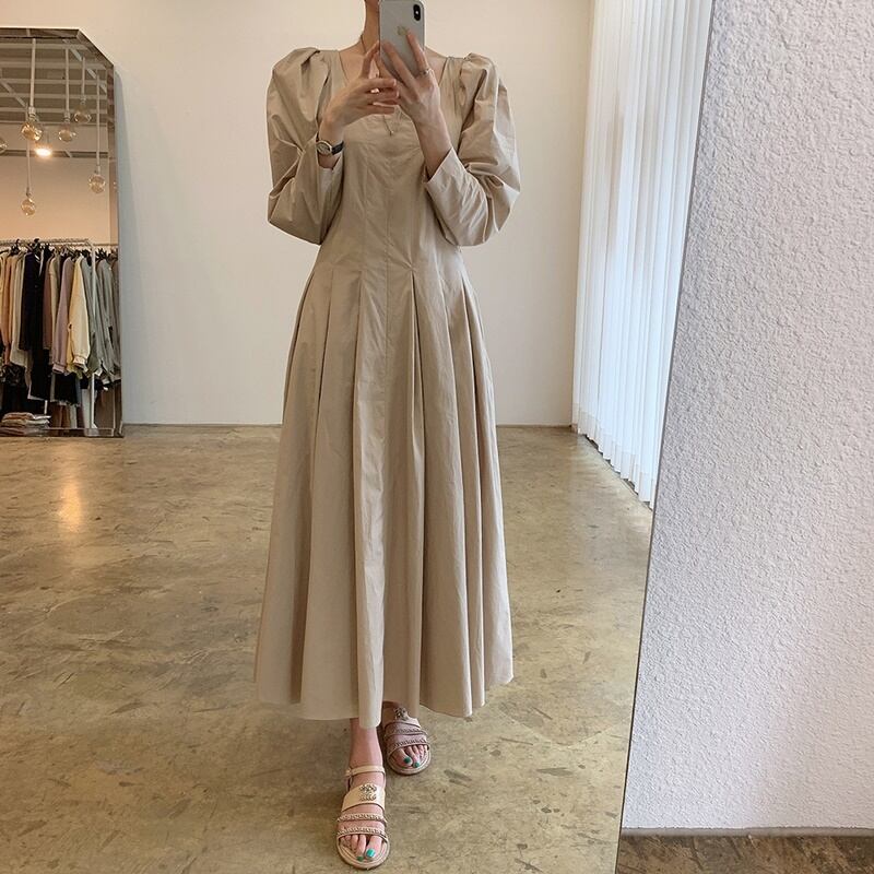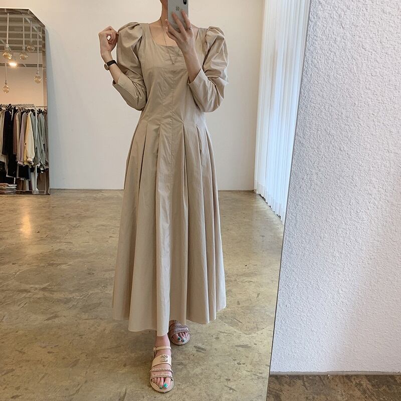 2カラー シンプル ボリューム袖 スクエアネック 長袖 ワンピース *on844