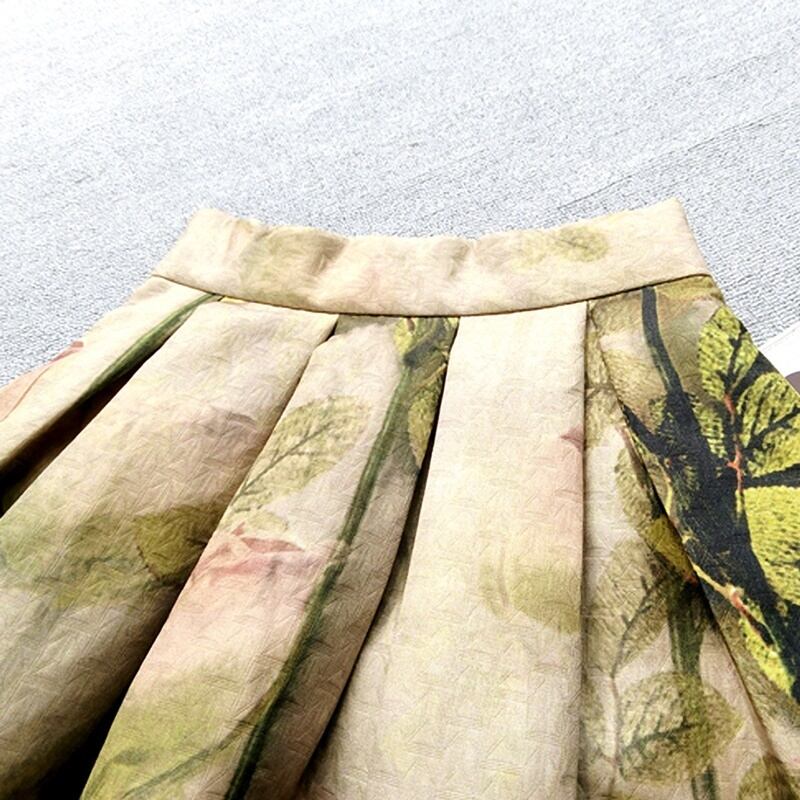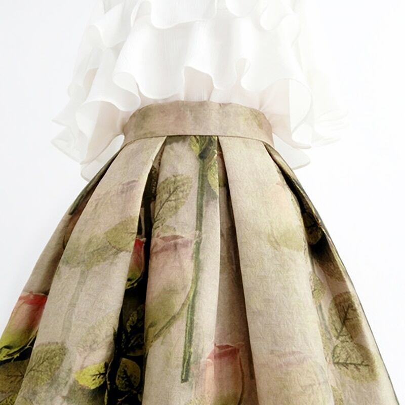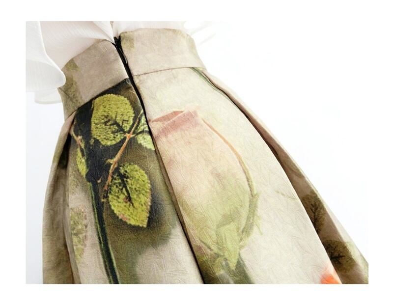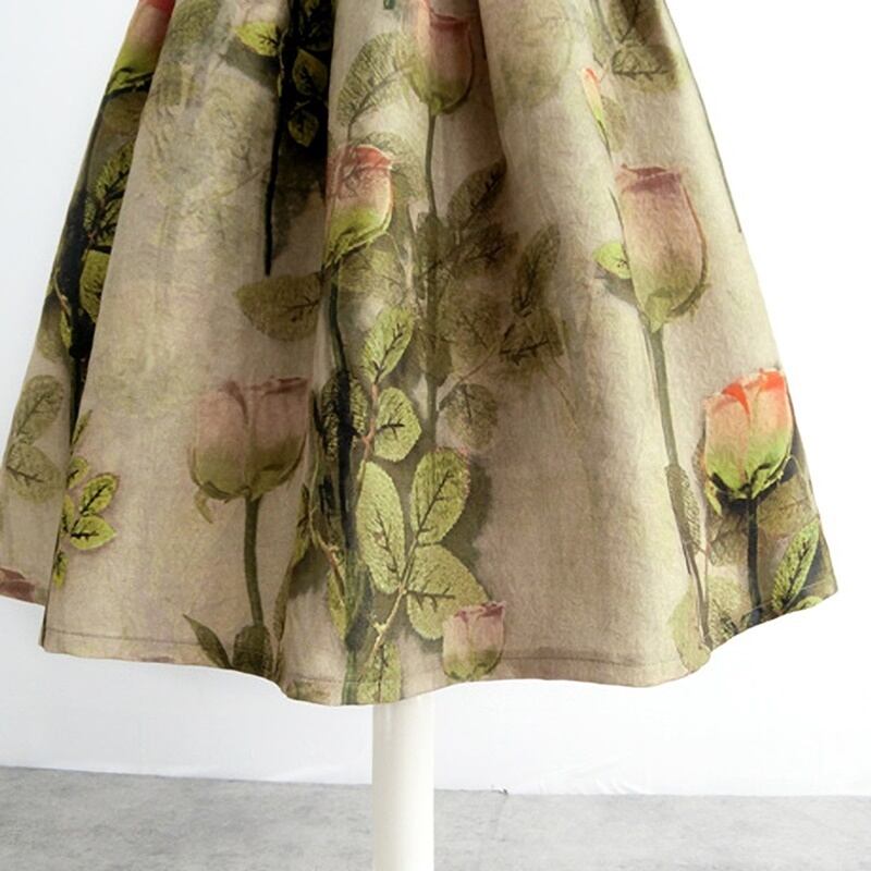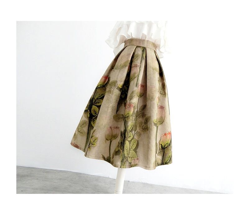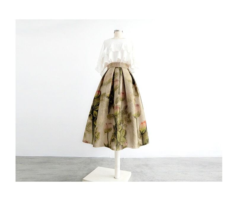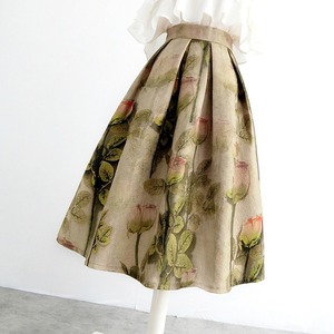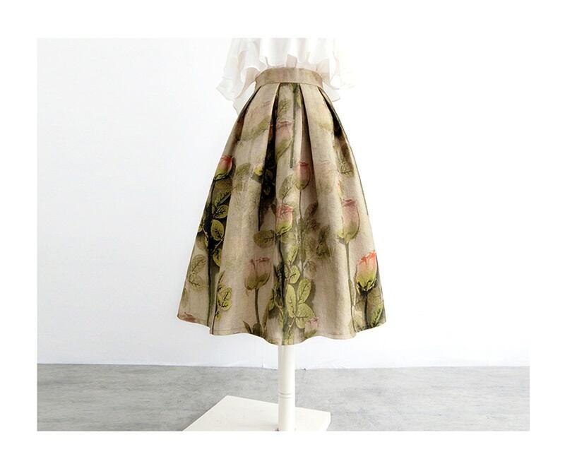 花柄 油絵 ハイウエスト Aライン スカート *sk182