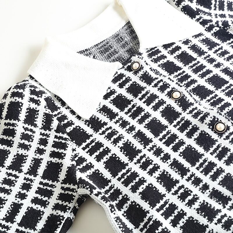 2カラー チェック柄 Vネック 長袖 ニット セーター *ks151